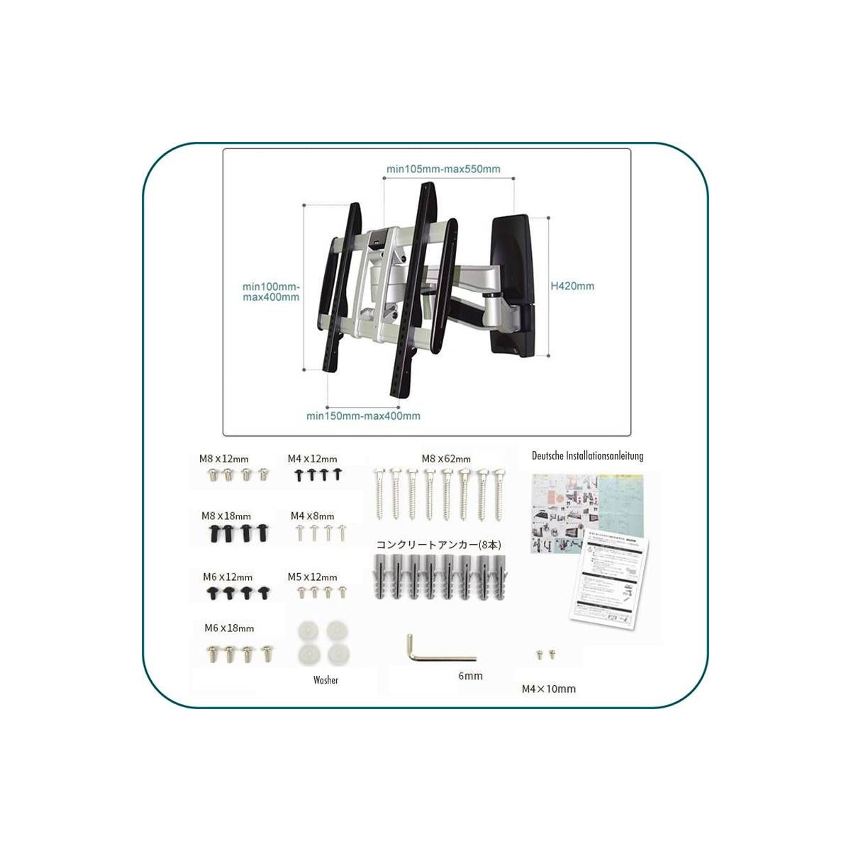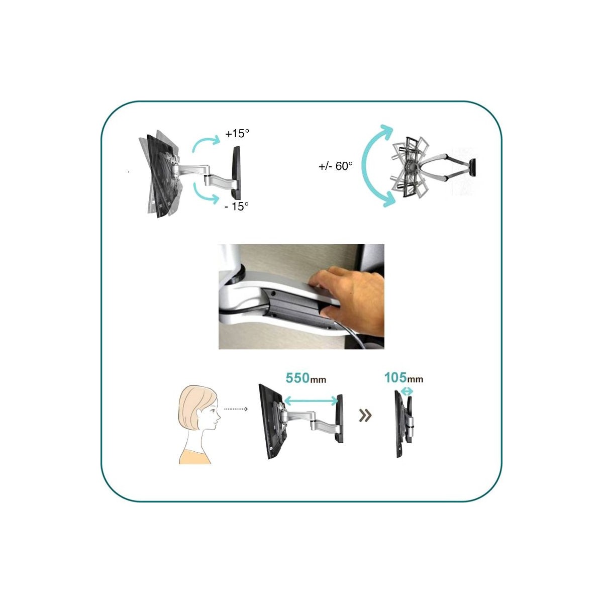 • Full Motion LCD/LED Wall Support with 4 Arms and 5 Pivot Points