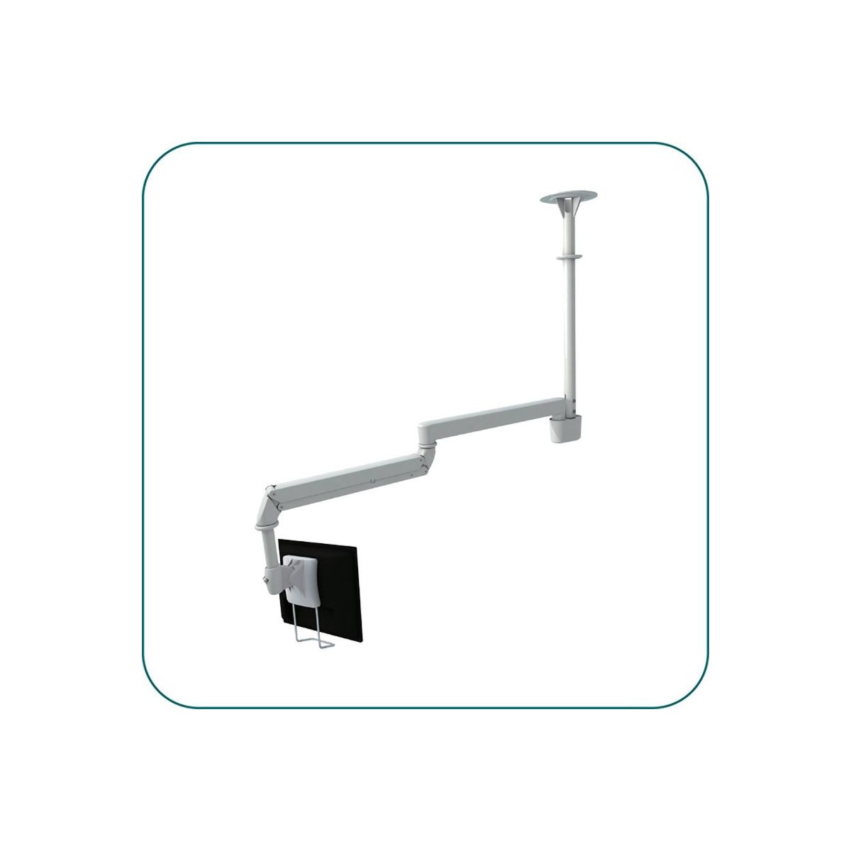 Product code:Aavara is pround to present the Ceiling Cantilever Medical ARM. It's a professional design with Ergonomic Expertorque™ Technology for the well-being of Healthcare Industry. It equipped two swivel and tilt display mount up to 24 inch with VESA Mounting 100x100mm and Max. Loading capacity up to 12kgs.