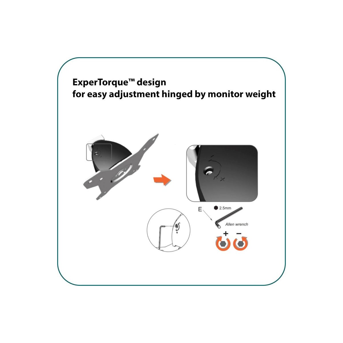 • ExporTorque™:ExperTorque™ design for easy adjustment hinged by monitor weight