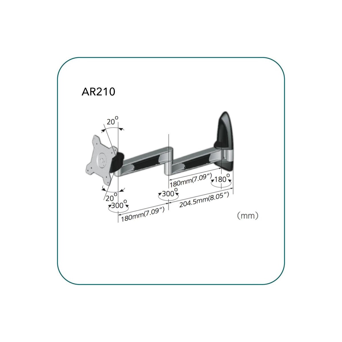 Product code:Aavara AR210 is a full motion LED/LCD wall mount, featuring easy adjustment of Tilt and Swivel for ergonomics.