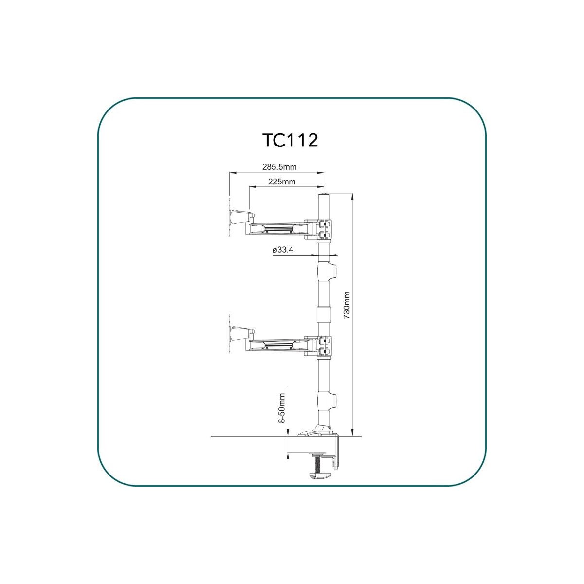 Product code:Aavara TC112 is an Extended Dual LED/LCD Monitor clamp base stand, featuring a wide angle of +/- 20 degree Tilt, swivel and a 360 degree rotation. It supports VESA 100x100/75x75mm display and ExperTorque™ technology enables adjustment of the screens hinged by its weight.