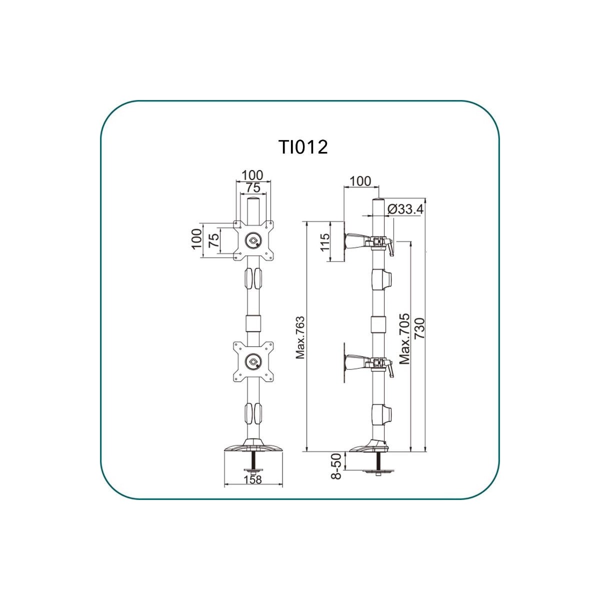 Product code:Aavara TI012 is an Extended Dual LED/LCD Monitor Grommet base stand, featuring a wide angle of +/- 20 degree Tilt, swivel and a 360 degree rotation. It supports VESA 100x100/75x75mm display and ExperTorque™ technology enables adjustment of the screens hinged by its weight.