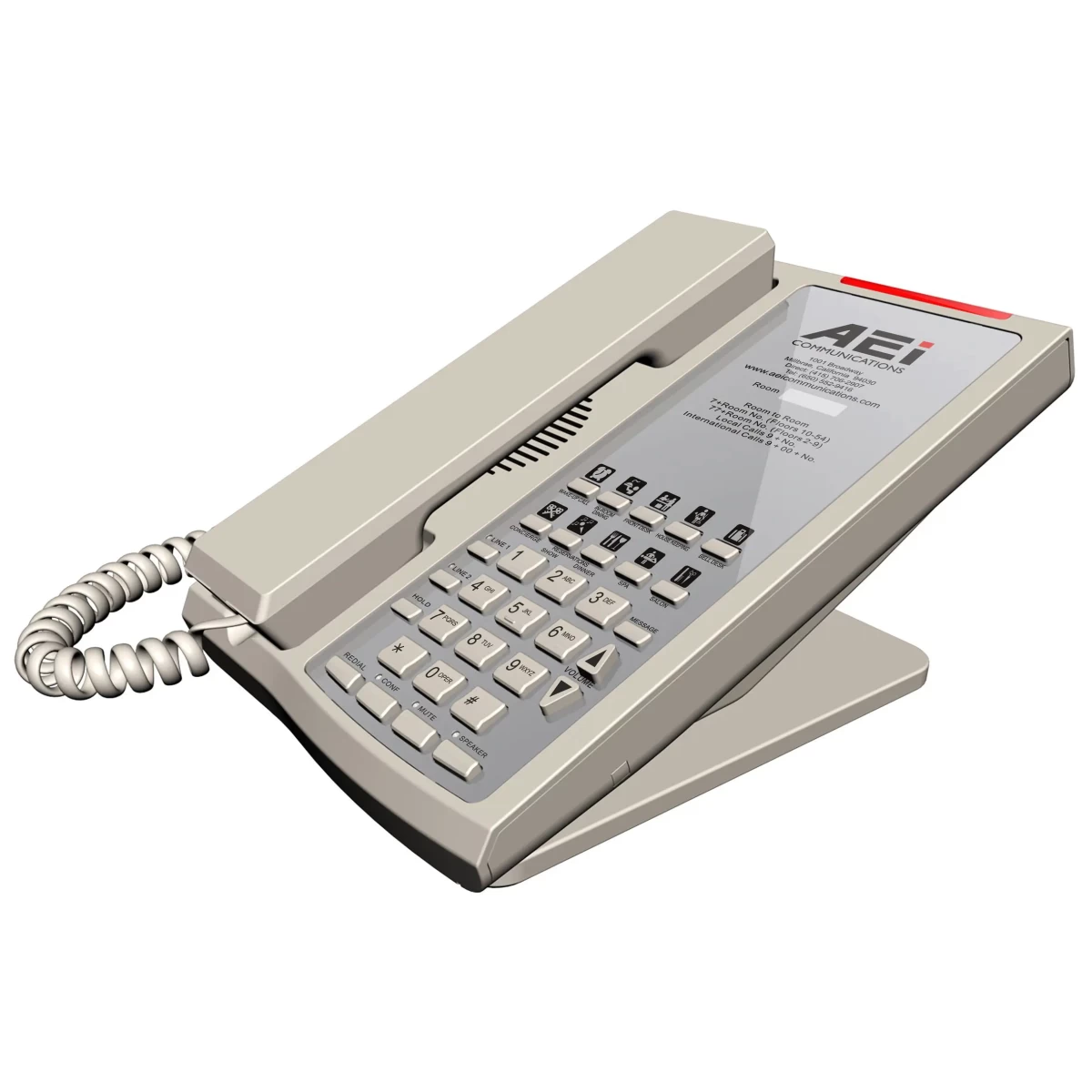 | Product Spec ASP-6210 Two-Line Non-Speakerphone ASP-6210-S Two-Line Speakerphone ASP-6200-S Two-Line Speakerphone w/o Guest Service Keys Color Finish Faceplate Power Signaling Flash Timing Ring Equivalence Handset | Jacks RJ11 Line, RJ11 Data and RJ9 Handset Cords Dimensions Weight EMI, SAR & PTSN RoHS Temperature |