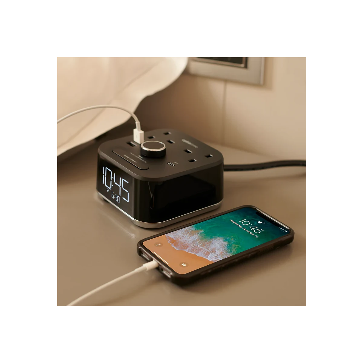 This innovative charging alarm clock features a user-friendly design, UK power sockets, and USB- A and USB-C charging for ultimate convenience.