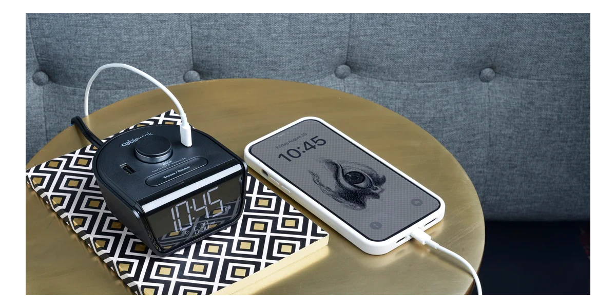 CubieWink 2.0 charging alarm clock! The wildly popular hotel clock includes USB-C! Petite in size, Wink is powerfully packed with 1 USB-C and 1 USB-A, ready to take on the task of charging your hotel guest's mobile phones and devices.