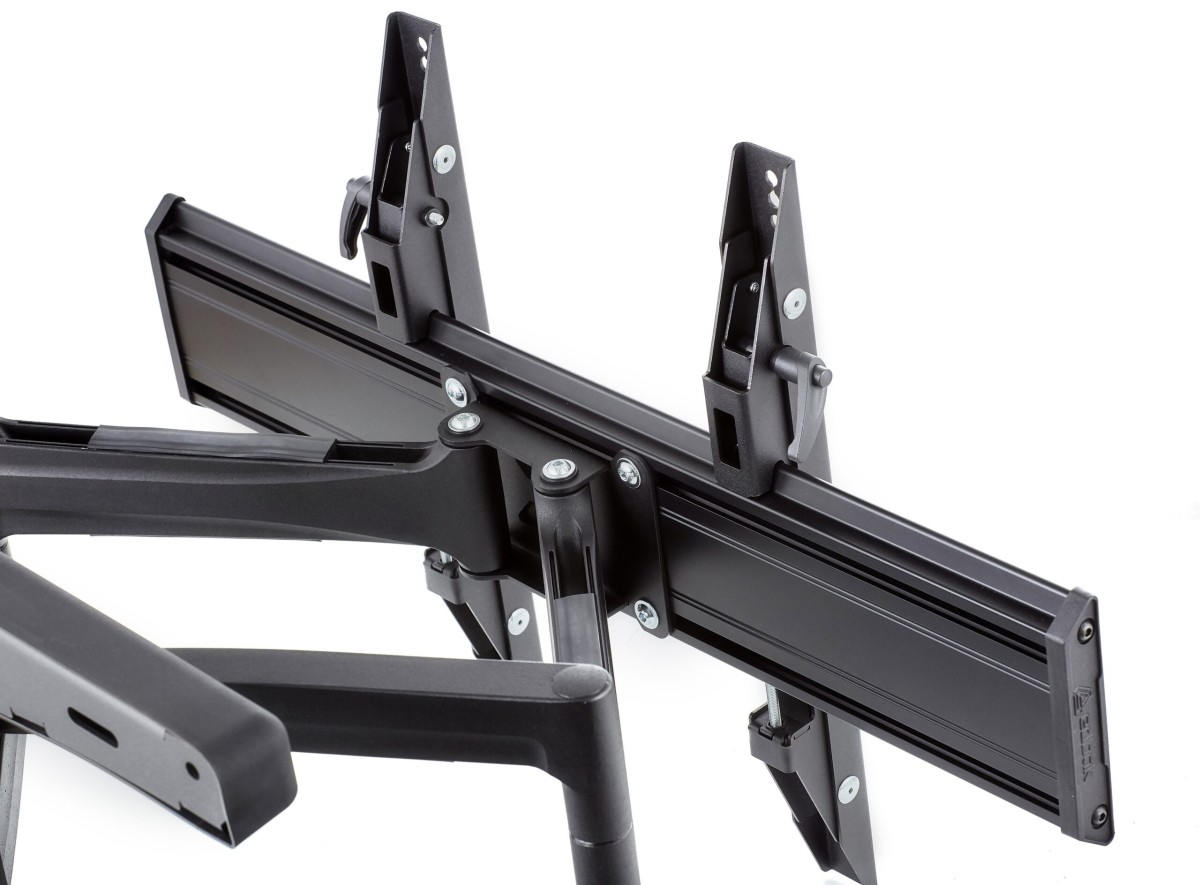 Product code:The VSM654 double swing arm wall mount is dedicated to large screens from 65″ to 86″. This mount is made of aluminum arms with cables routed inside to ensure smart installation and aesthetic finish. The design is adapted to frequent changes in the position of the screen, so it is a perfect solution for places where the position of screens is often changed. VSM654 has the possibility of rotating the screen to the right and to the left by 90° and tilting the screen by +11°, which allows the position of the screen to be adjusted the user’s expectations and increases the comfort of use.