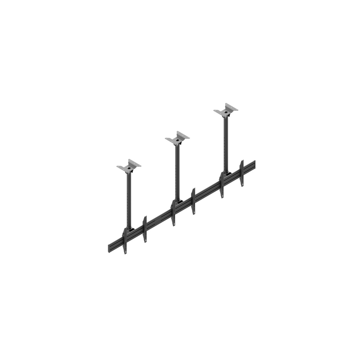 Product code:MBV3147-L is a robust and accurately manufactured ceiling mount for three screens. It features a slim structure and simple design. Stepwise height adjustment ensures accurate fastening, and the integrated cable routing system allows the cabling to be hidden, guaranteeing aesthetic appearance. Equipped with safety devices that protect the screen against falling, it is perfect for hotels, restaurants and public buildings. The MBV3147-L mount is a perfect solution for those who value aesthetics and comfort during use.