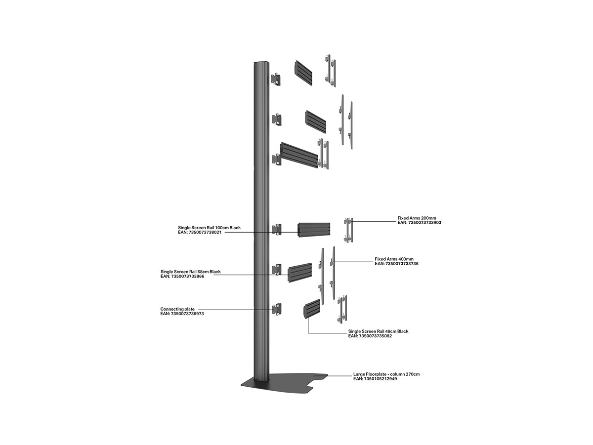 Product code:M Pro Series Video Wall Stand MBF6U Art - Floor column stand for LCD display, steel, 2.7m height, 6 screen, single side, Variuos VESA - screen size: 40"-65" - black