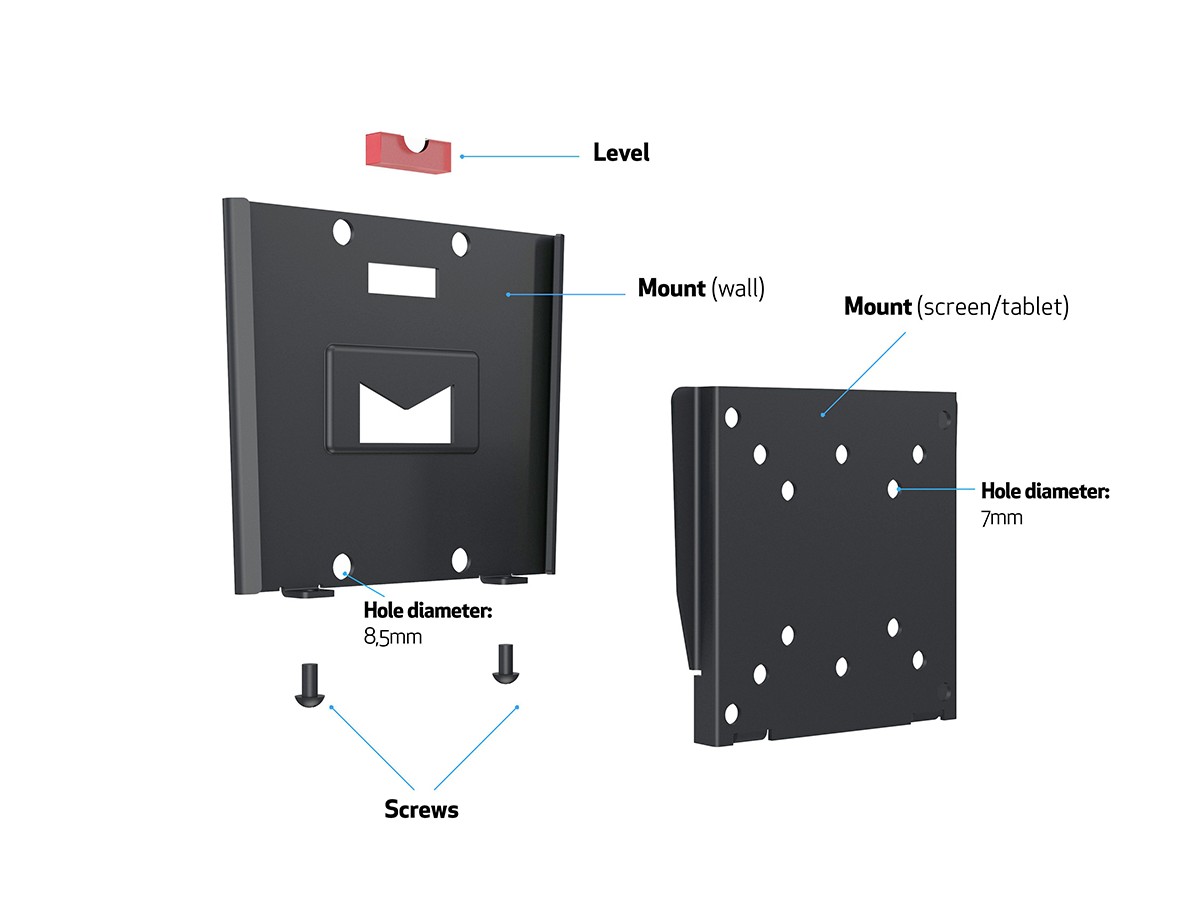 This superslim economy VESA mount for displays with VESA® 50x50, 75x75, 100x100 mm mounting patterns.