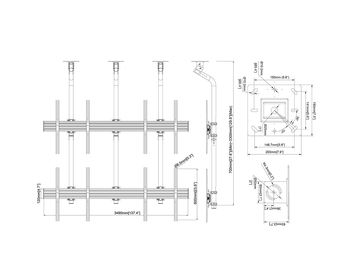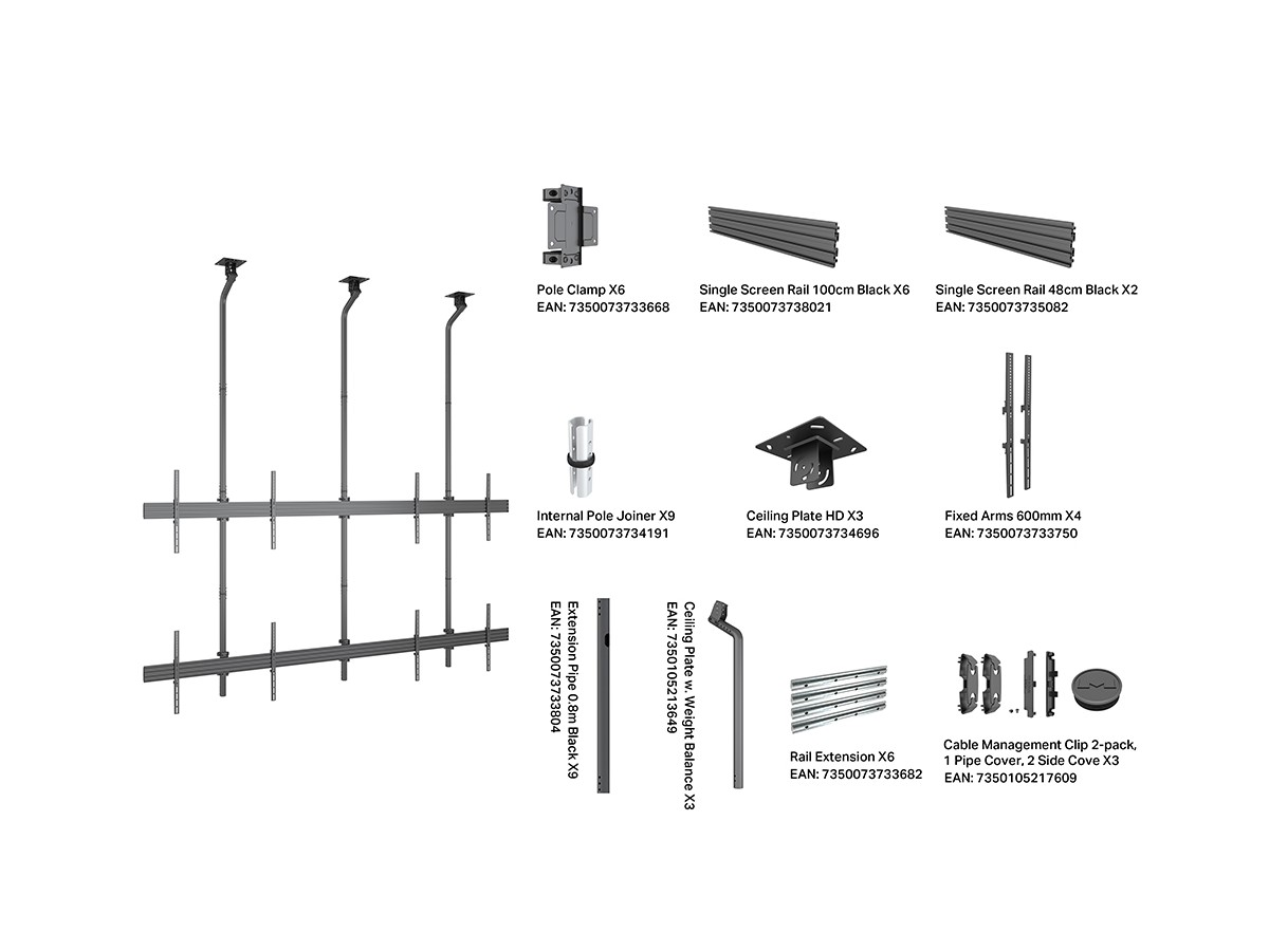Product code:M Ceiling Mount Pro MBC2X2UGC HD - Ceiling mount for Displays, steel, 3m length, 4 screens, single side, fixed arms, VESA Max 800x400 - screen size: 75"-100" - black