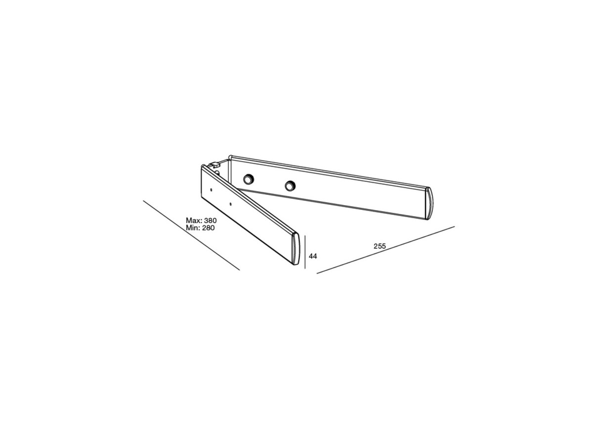 | Size in mm: (WxDxH) | 255x280-380x44mm |