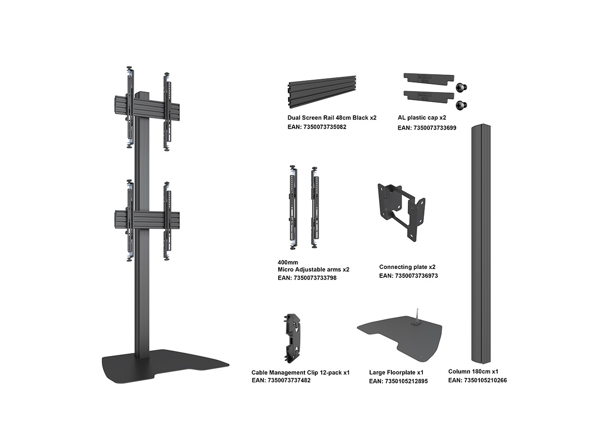 Product code:M Floorstand Column Pro MBFSC2U 180 Micro Adjustable - Floor column stand for LCD display, steel, 1.8m height, 2 screen, single side, micro adjustable arms, VESA Max 400x400 - screen size: 40"-75" - black