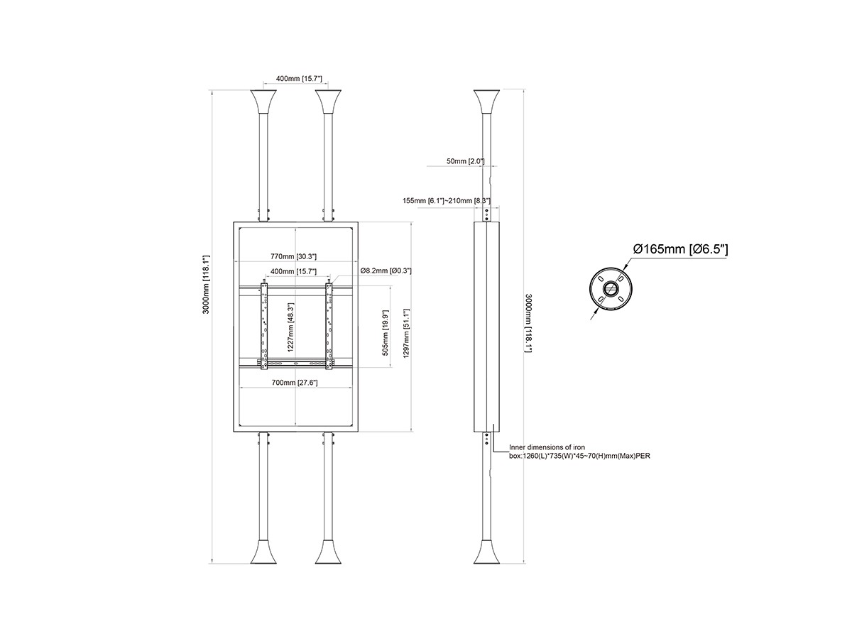 Product code:M Pro Series Enclosure Floor to Ceiling Mount B2B 55" Medium Black – Floor to ceiling mount with casing for display, steel, 3m length, 2 screens, double side, fixed arms, VESA max 600x400 - screen size: 55" - black
