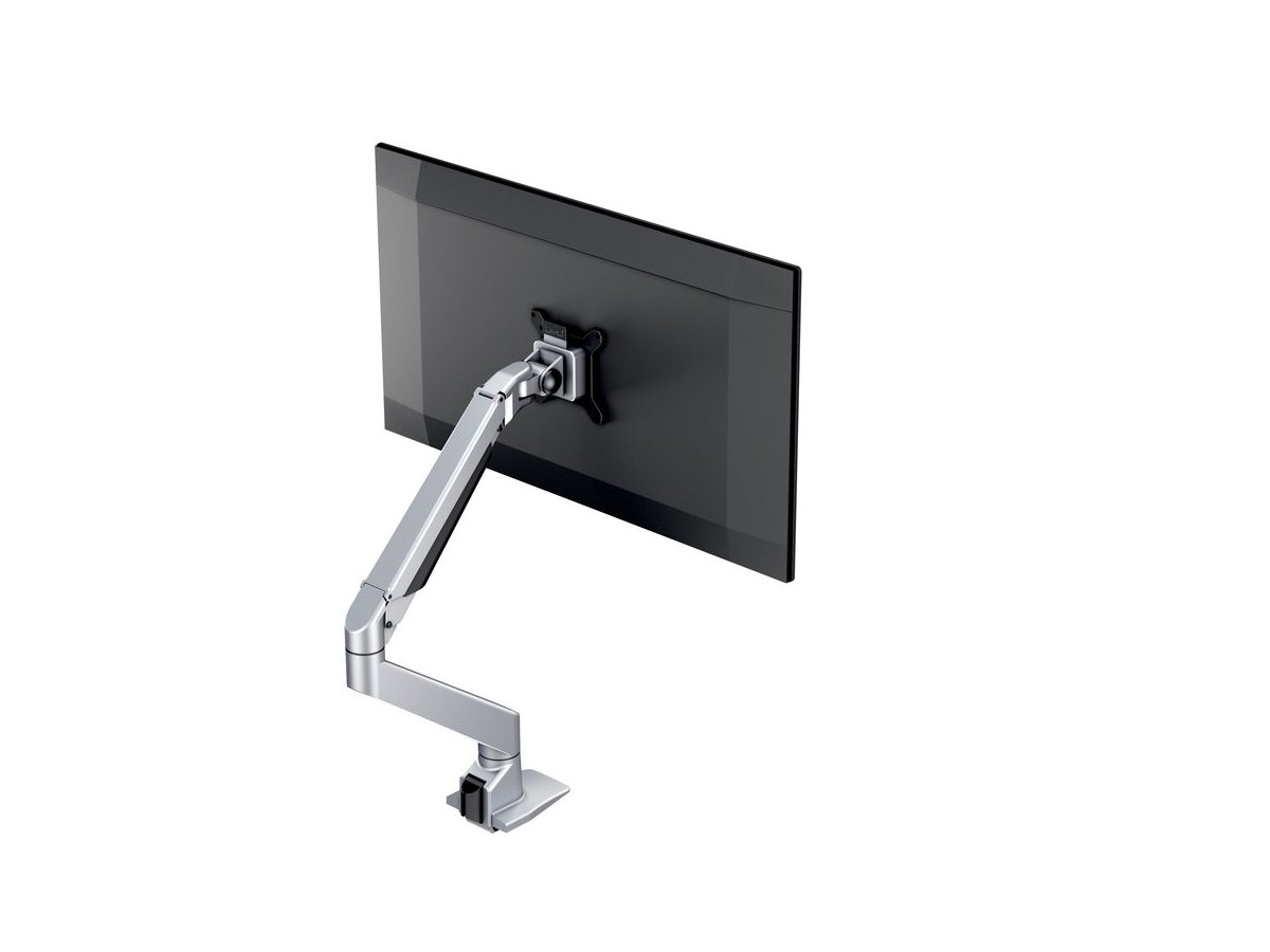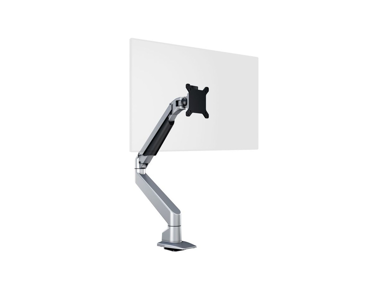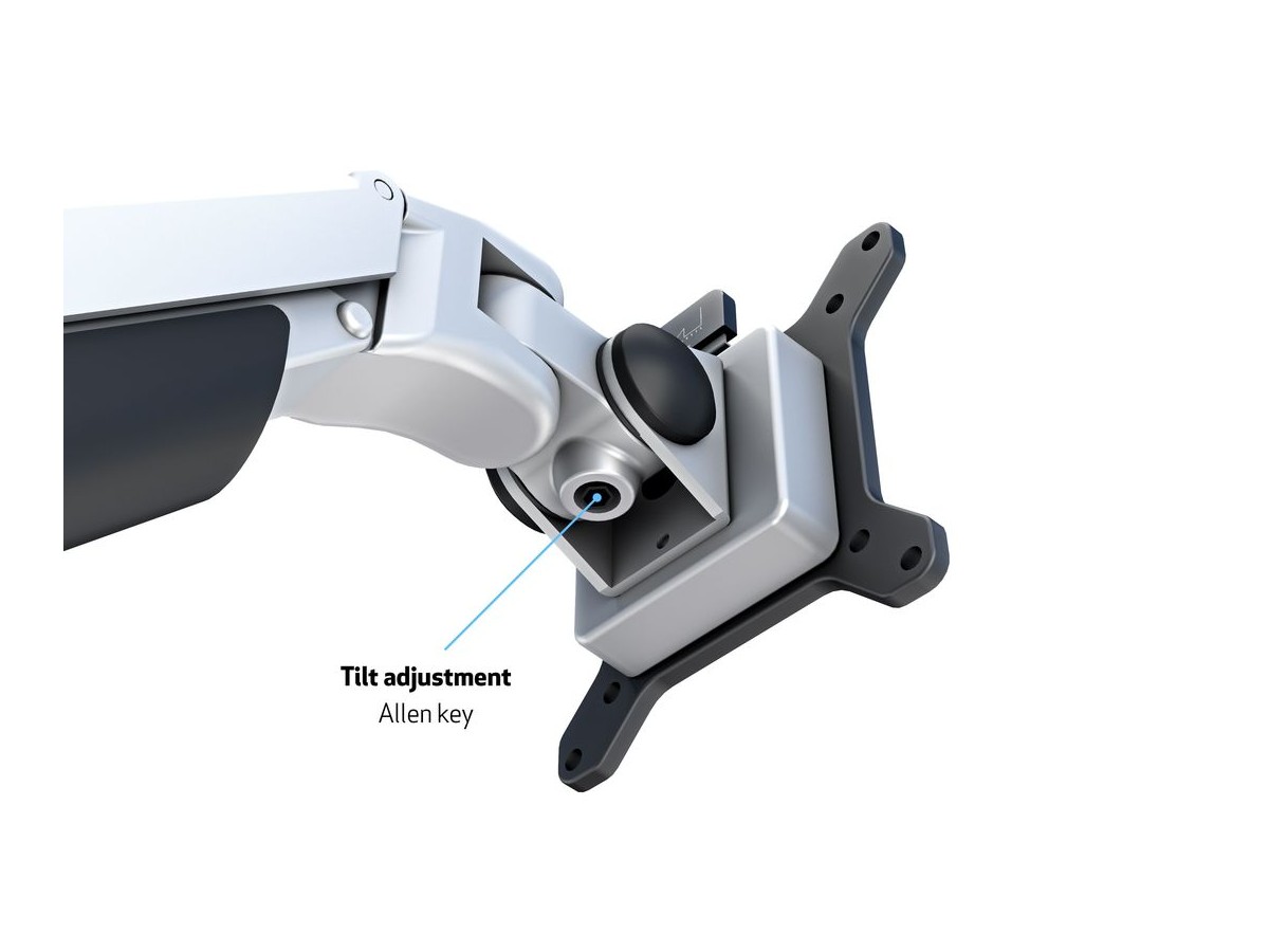 The M VESA Gas Lift Arm is made out of a durable aluminum construction and uses a gas driven suspension technique. This makes the screen "float" and it can then be moved with near zero effort. Sleek and streamlined, the M VESA Gas Lift Arm Single frees up space and allows positioning of your display for greater productivity. The unique counterbalance gas technology provides smooth adjustment in any direction. Easy move the screen from landscape to portrait position or move the screen close to the desk, high up, matching almost any wanted working position imaginable.