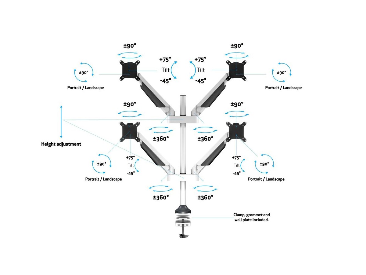 The Quad triple jointed gas suspended monitorarm was designed by Multibrackets to optimize your productivity and help reducing strain on neck, back and eyes.