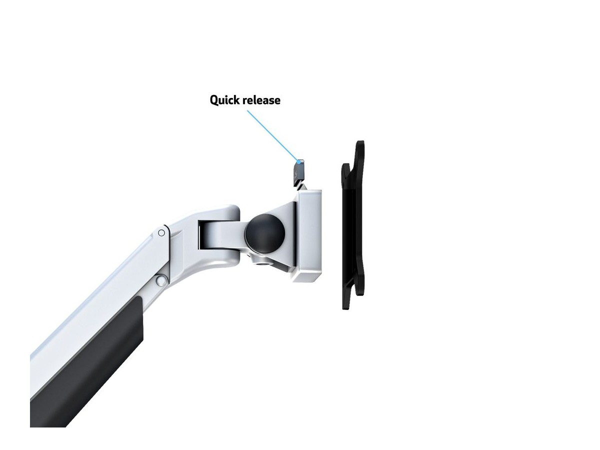 The M Vesa Gas Lift Arm is made out of a durable aluminum construction and uses a gas driven suspension technique. This makes the screens "float" and they can be moved with near zero effort. Sleek and streamlined, the M Vesa Gas Lift Arm frees up space and allows positioning of your displays for greater productivity. Fingertip tilt provides smooth adjustment for two LCD´s in any direction. Easy move the screen from landscape to portrait position or move the screens close to the desk, high up, matching almost any wanted working position imaginable.