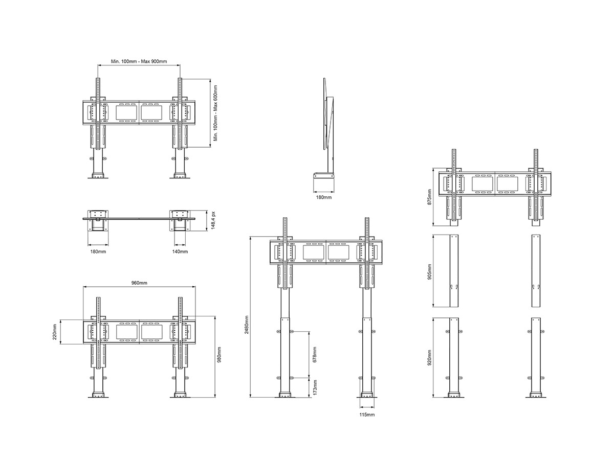 Product code:M Motorized TV Lift Duo X-Large - Stand kit (electric) for TV´s and displays - 55"-100" - dual motors - VESA 200x200 - 900x600 - maxload 100kg - black