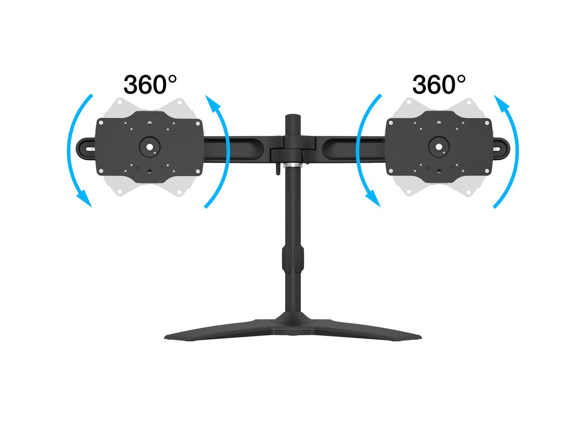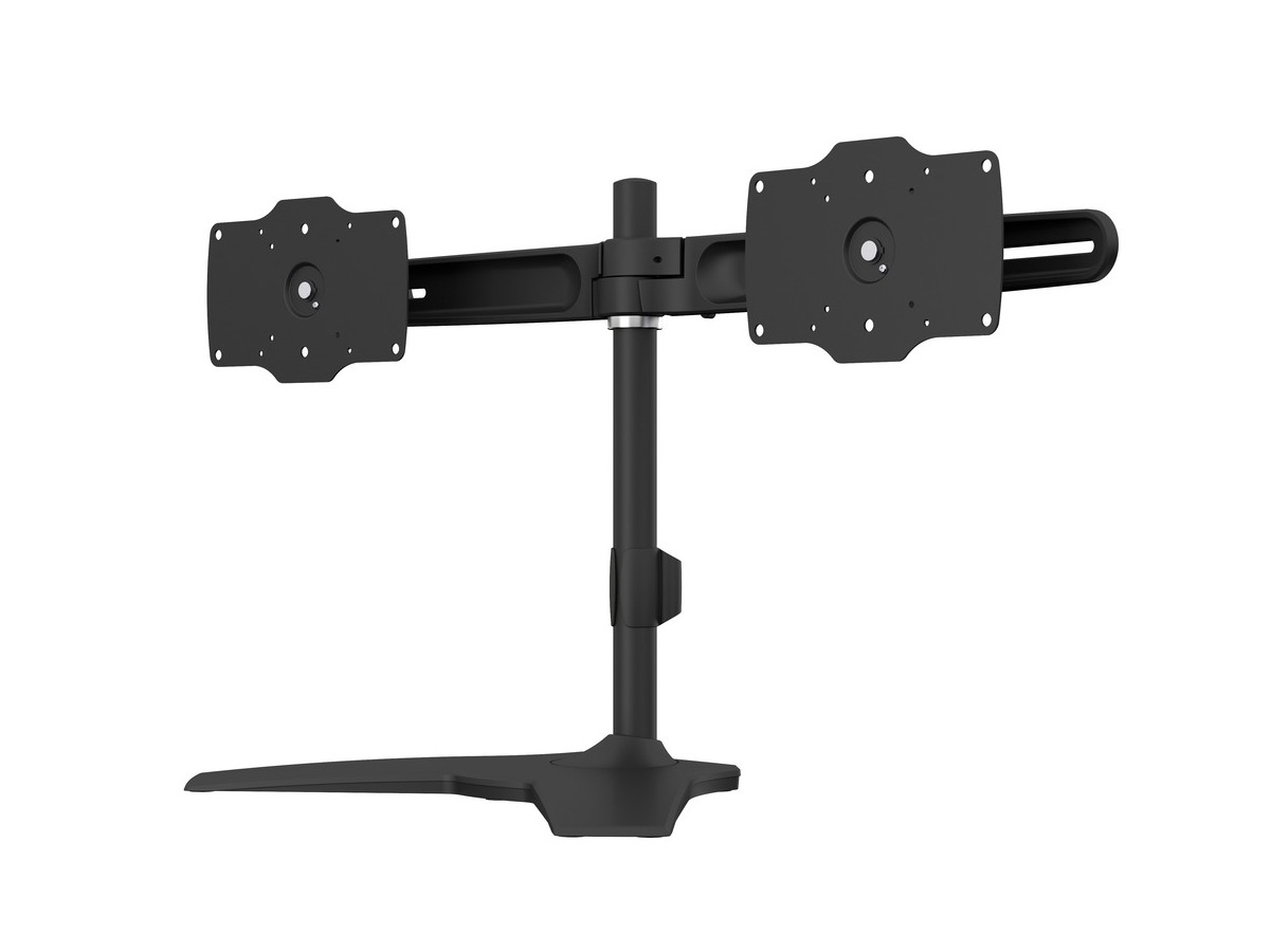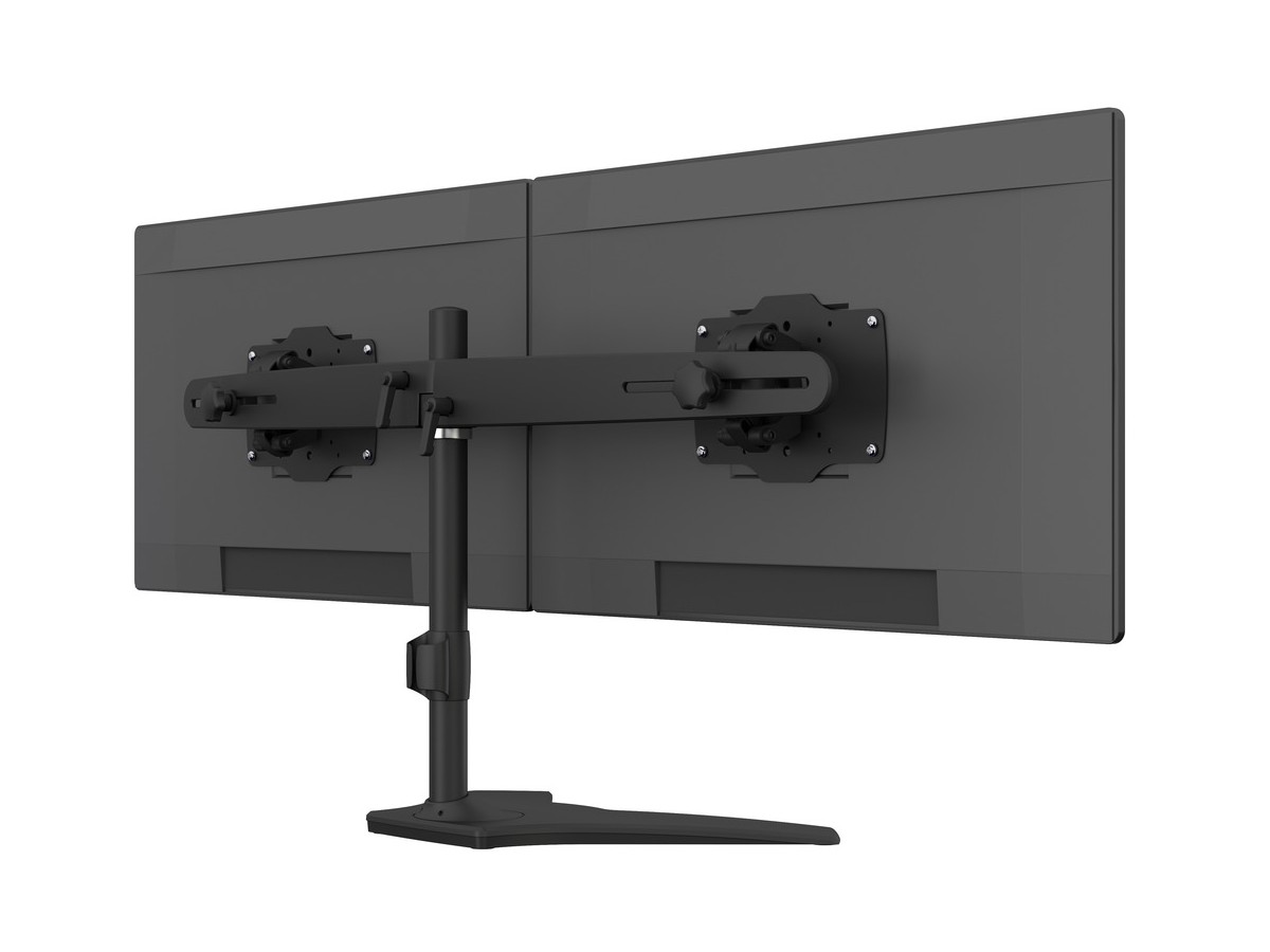 M VESA Desktopmount Dual Stand is made out of durable aluminum and steel creating a heavy duty but still sleek unit with great stability. This is most certainly one of the most stabile multi-monitor solutions on the market today. It also matches our M VESA Desktopmount Series, allowing you to create a unity in any environment the desktop mounts are installed.