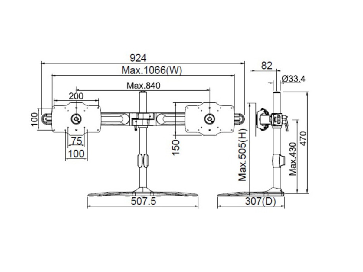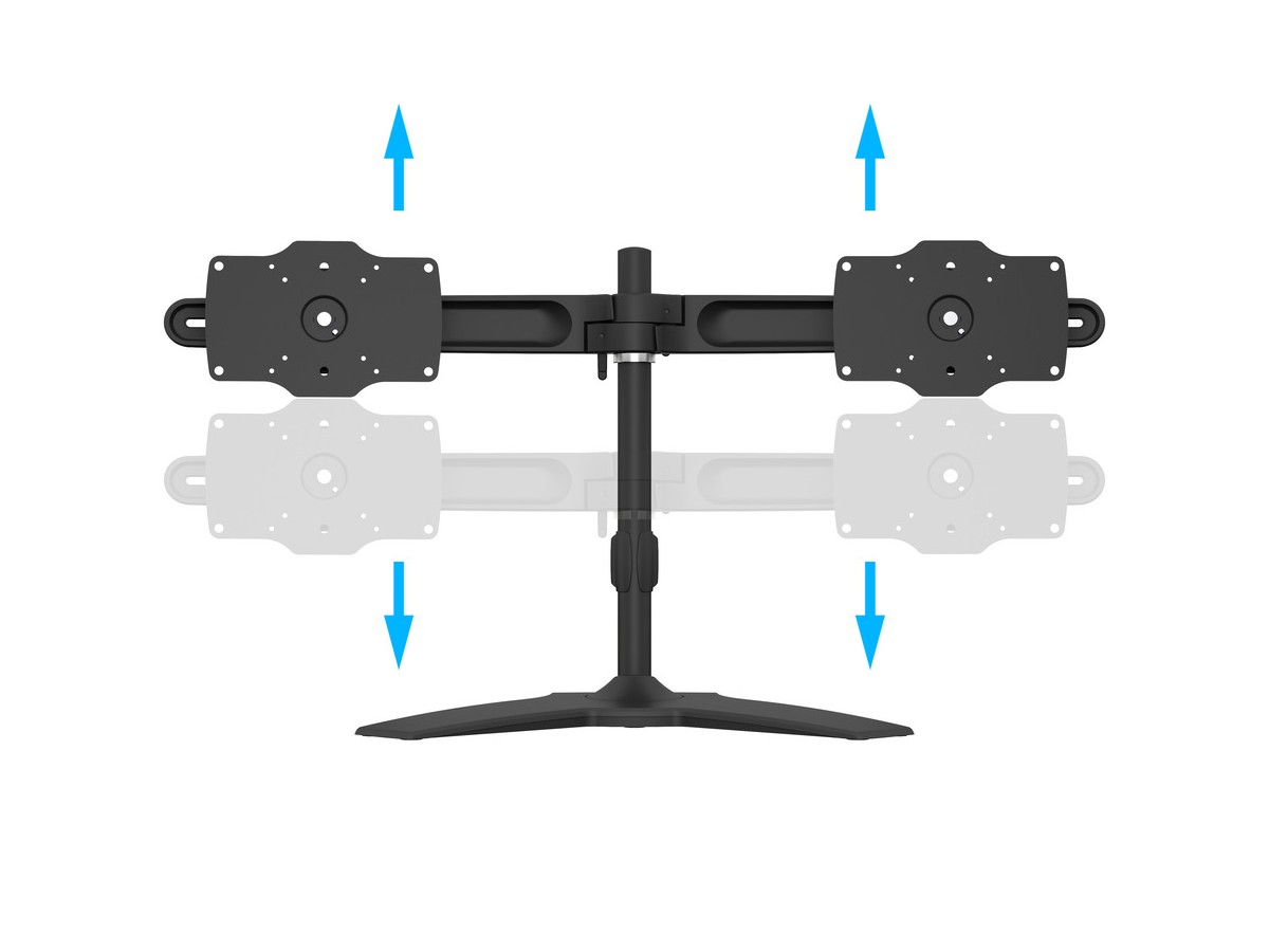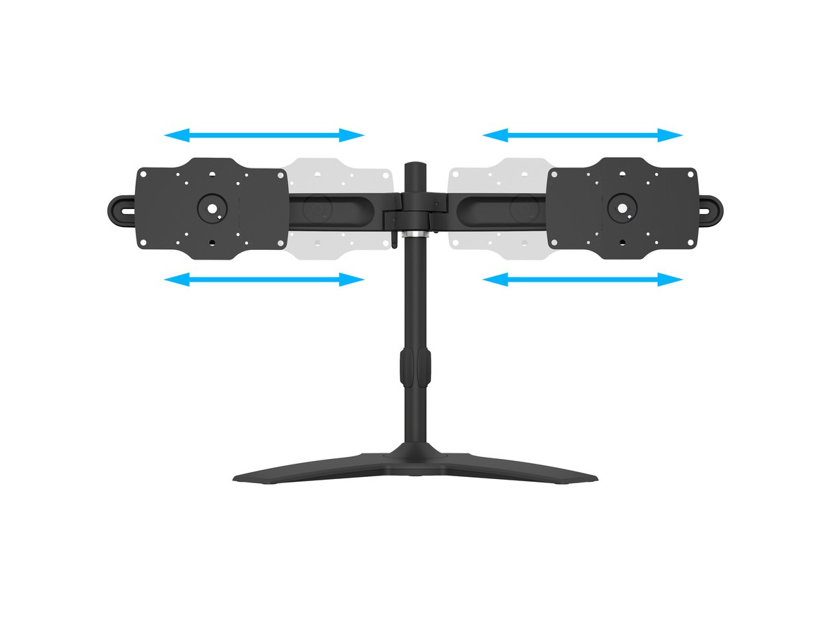 M VESA Desktopmount Dual Stand is made out of durable aluminum and steel creating a heavy duty but still sleek unit with great stability. This is most certainly one of the most stabile multi-monitor solutions on the market today. It also matches our M VESA Desktopmount Series, allowing you to create a unity in any environment the desktop mounts are installed.