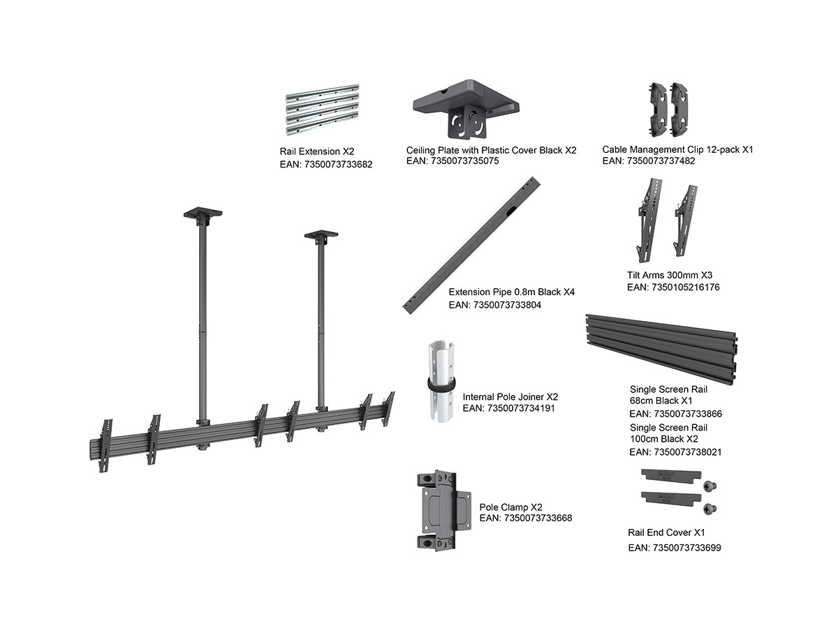 Product code:M Ceiling Mount Pro MBC3X1U, VESA 300 - Ceiling mount for LCD display, steel, 3m length, 3 screens, single side, tilt arms, VESA Max 300x300 - screen size: 32"- 50" - black