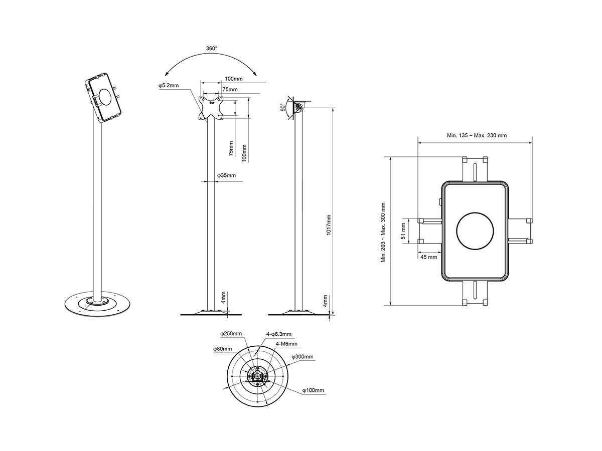 Product code:M Pro Series Single Pole Floorbase Tablet Black - Floorstand mount for monitor/ display, steel, 1m height, 1 screens, VESA 75x75, 100x100, screen size: 7"-30" - black