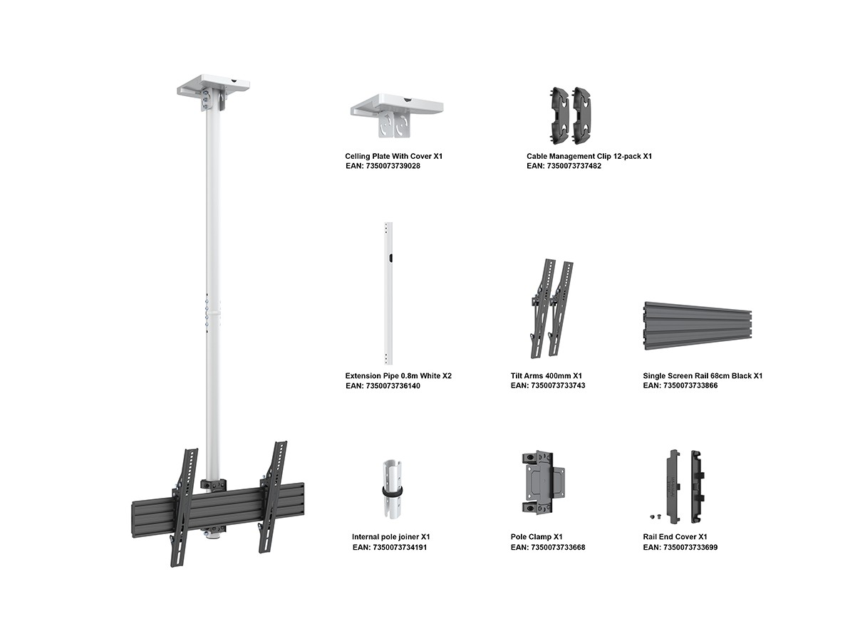 Product code:M Ceiling Mount Pro MBC1U White - Ceiling mount for LCD display, steel, 1.5m length, 1 screen, single side, tilt arms, VESA Max 600x400 - Max 45 kg - screen size: 40"-65" - white - TUV