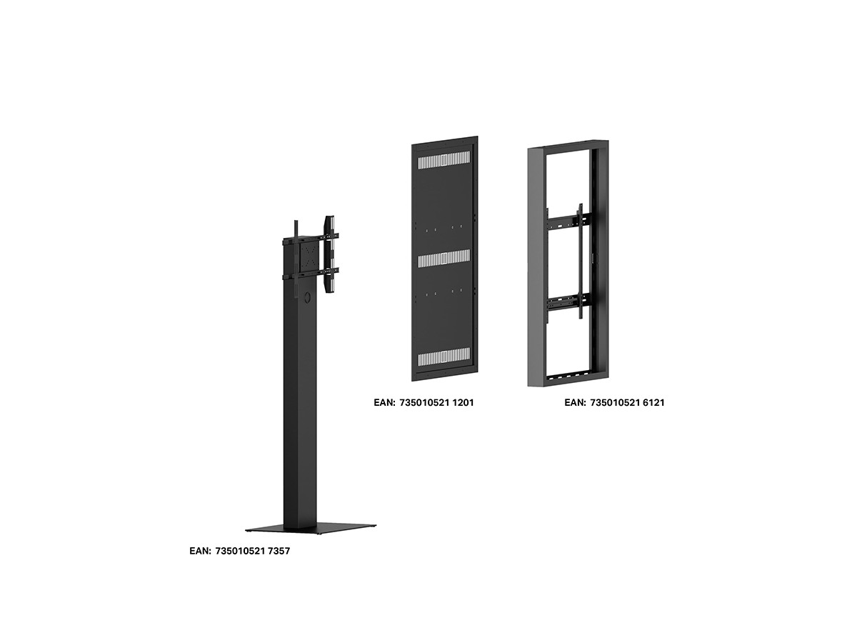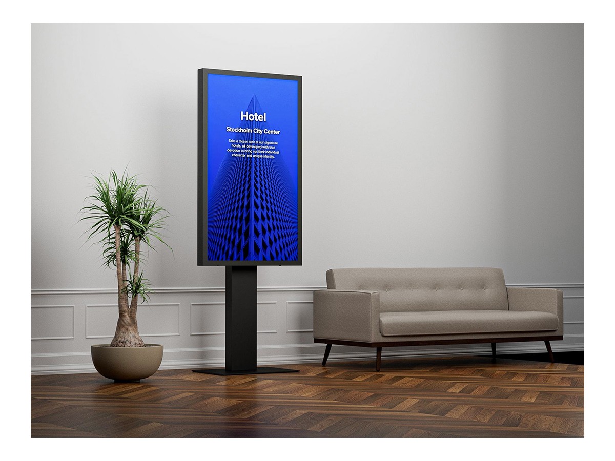 - A kiosk and enclosure for displays up to 55” allows for ultimate flexibility