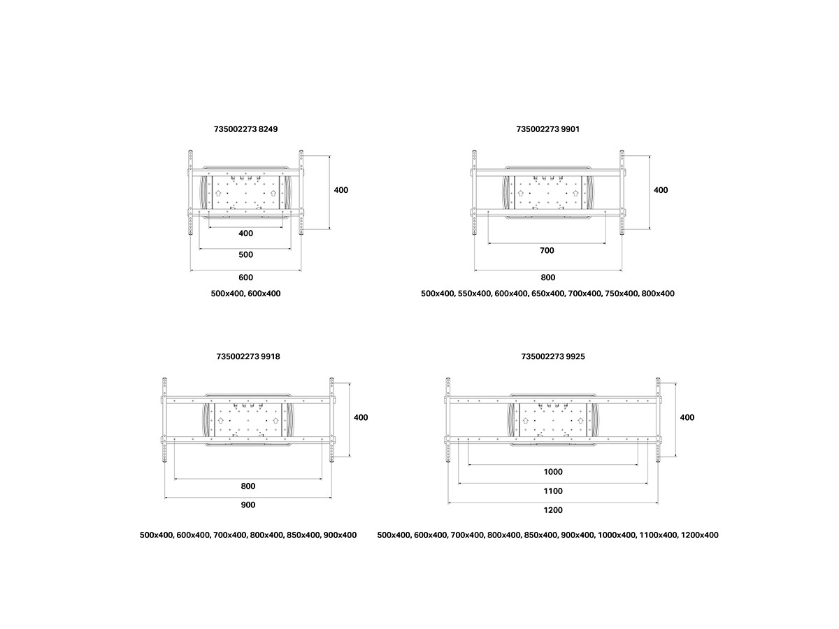 | Universal & VESA standard: | 100x100 100x200 200x100 200x200 300x300 300x200 400x200 400x400 600x400 800x400 |