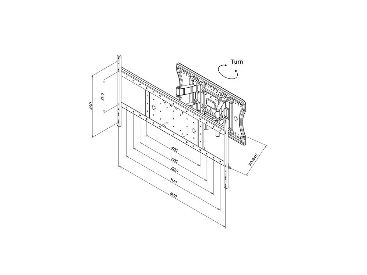 Product code:M VESA Super Slim Tilt & Turn SD 800 - Wallmount for LED / OLED/ QLED panel - flexarm - black - maxload 100kg - VESA max 800x400 - screen size: 75" - 100"