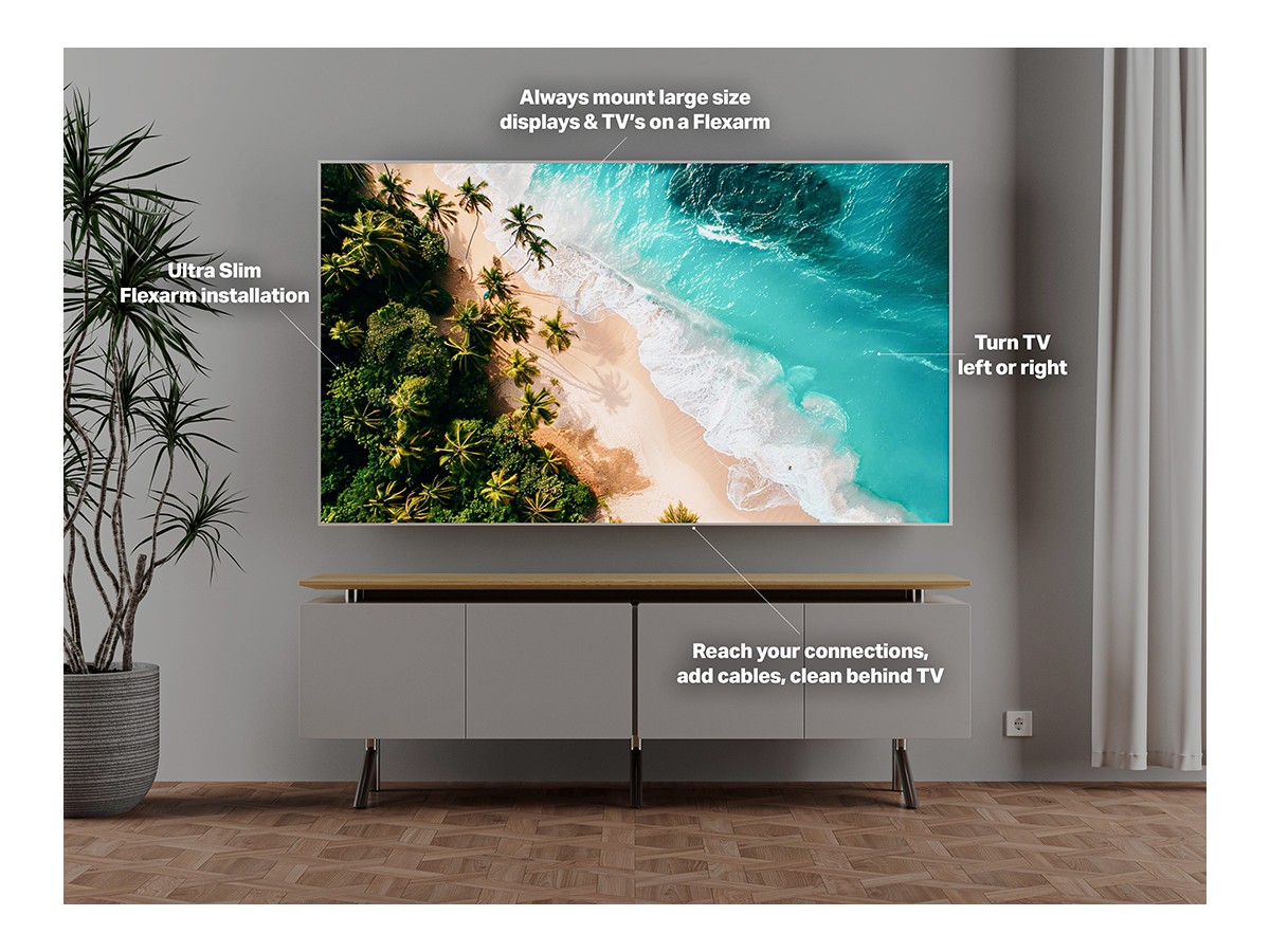 Product code:M VESA Super Slim Tilt & Turn SD 1200 - Wallmount for LED / OLED/ QLED panel - flexarm - black - maxload 125kg - VESA max 1200x400 - screen size: 75" - 110"