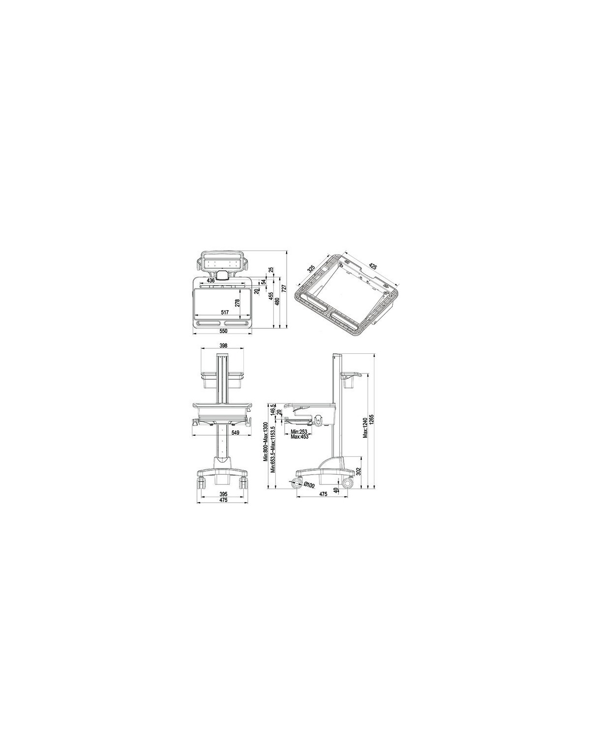 Multibrackets unique carts fits most notebooks and personal computer displays on the market.
