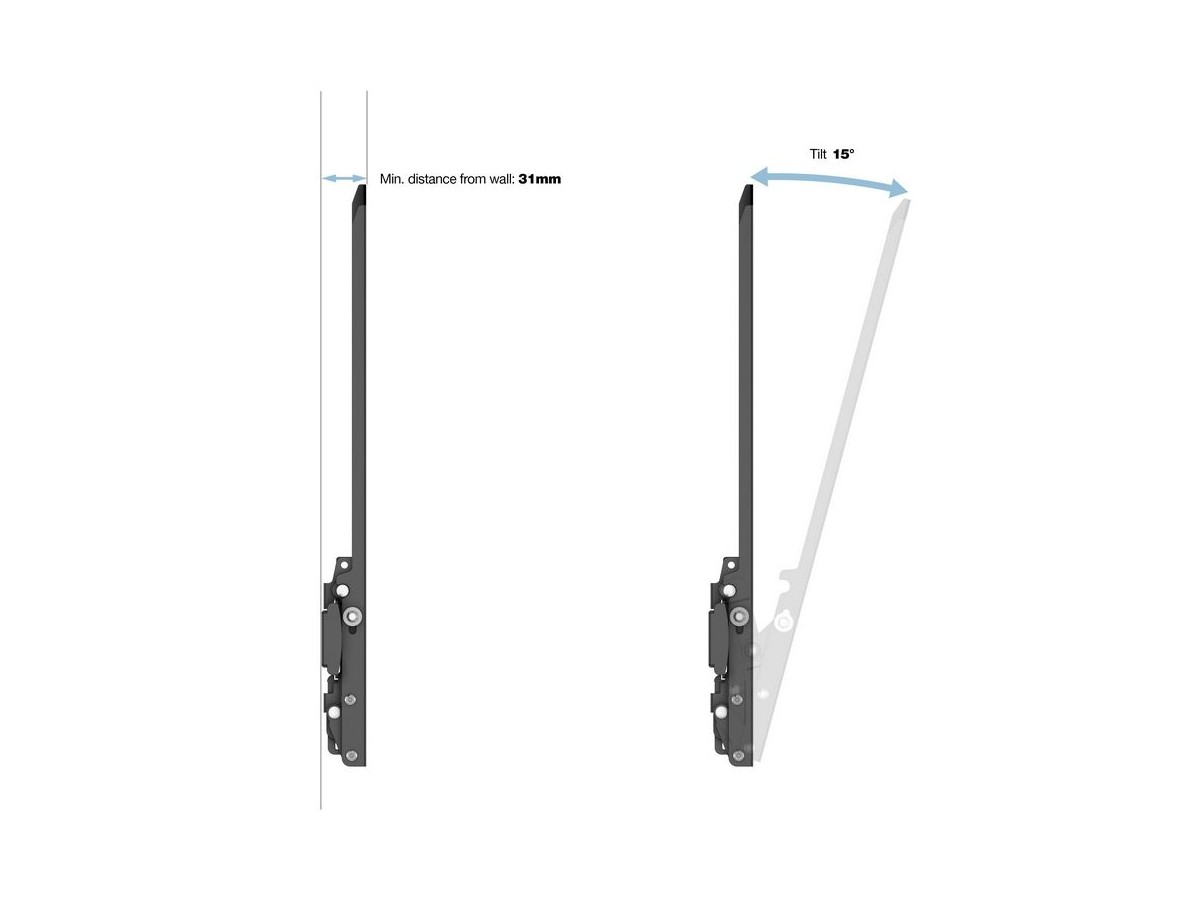- The smart low profile wallmount still gives enough space for cables and cooling