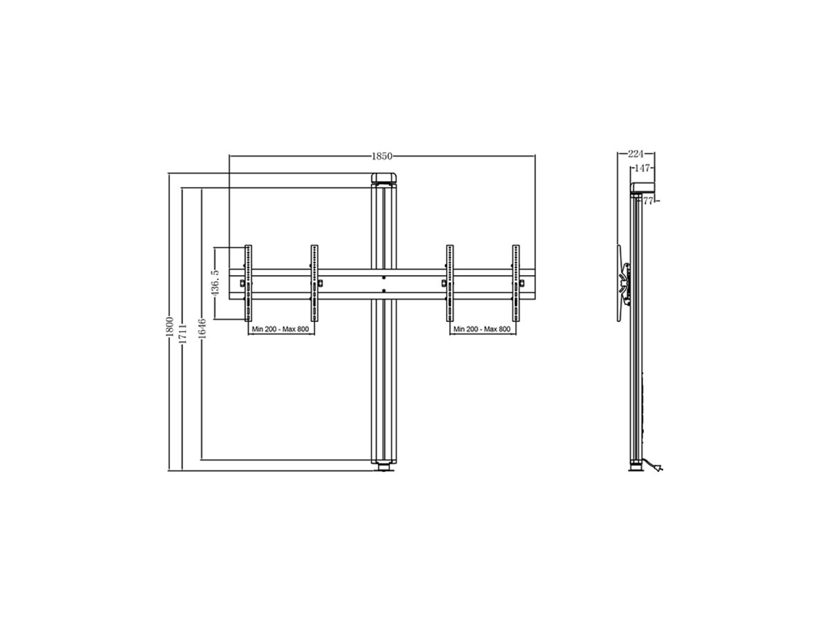 | VESA standard: | 200x200 300x200 300x300 400x200 400x400 600x400 800x400 mm |