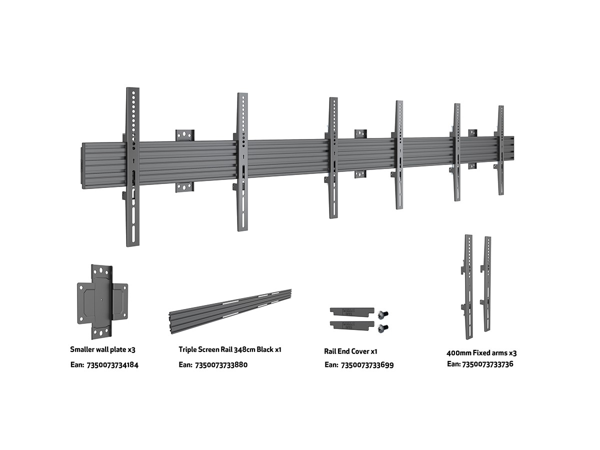 Product code:M Wallmount Pro MBW3U Fixed Black - Wall mount for LCD display, steel, 3 screen, single side, fixed, VESA Max 600x400 - Maxload 70kg - screen size: 40"-75" - black
