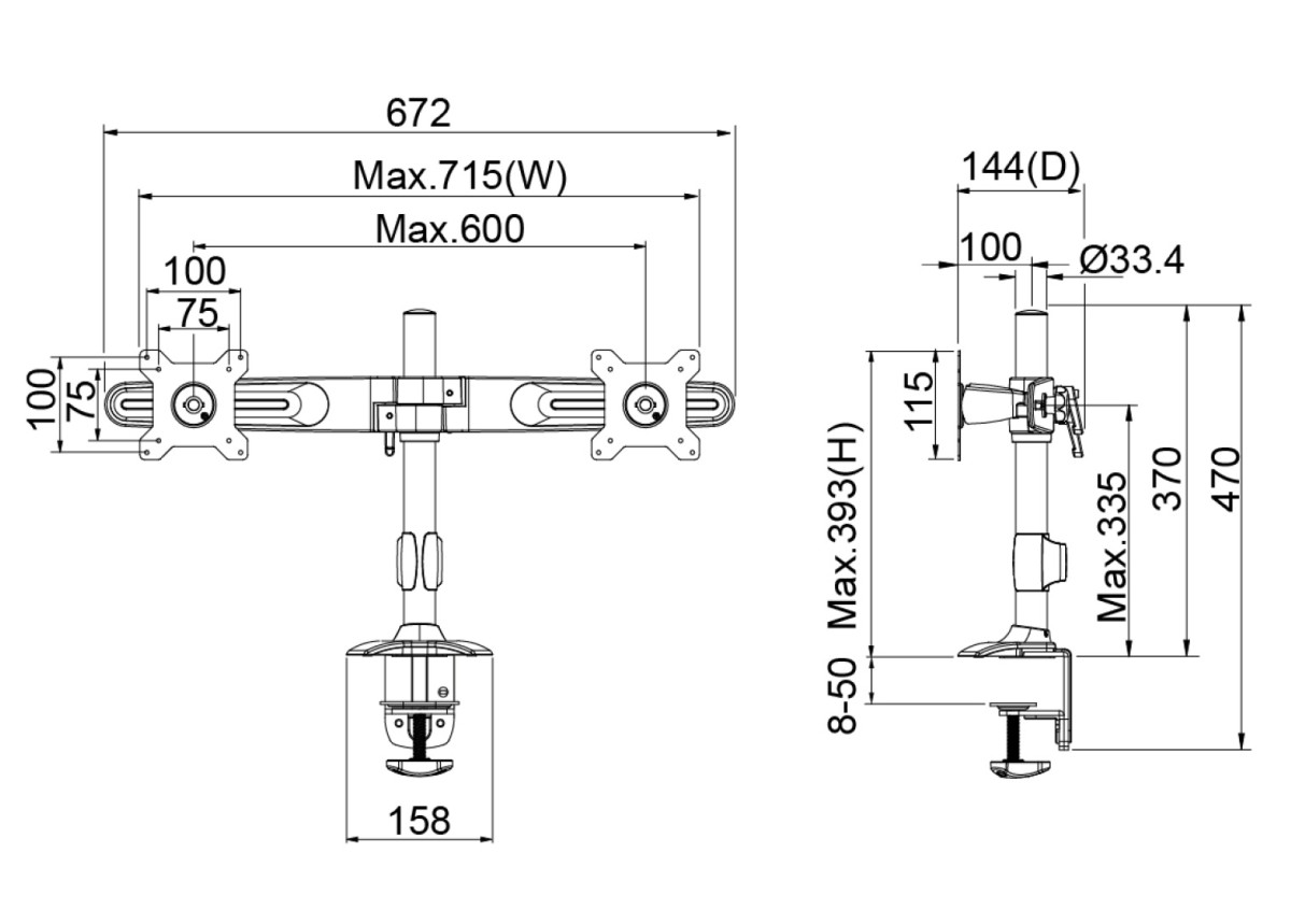 - Supports monitors weighing up to 7.5kg