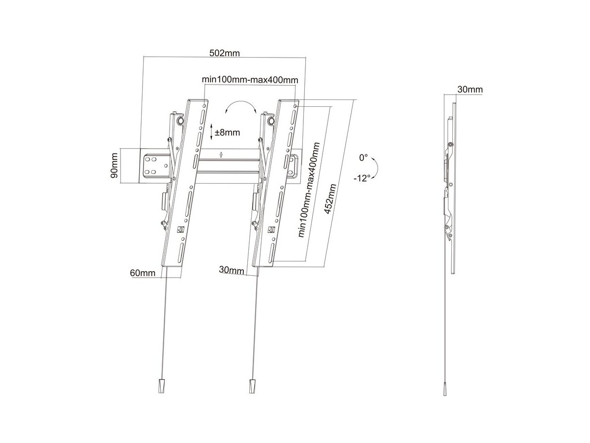 Product code:M VESA Wallmount Super Slim Tilt 400 MAX - Wall mount for LCD / LED panel - black - screen size: 32" - 55" - mounting interface: max 400 x 400 mm
