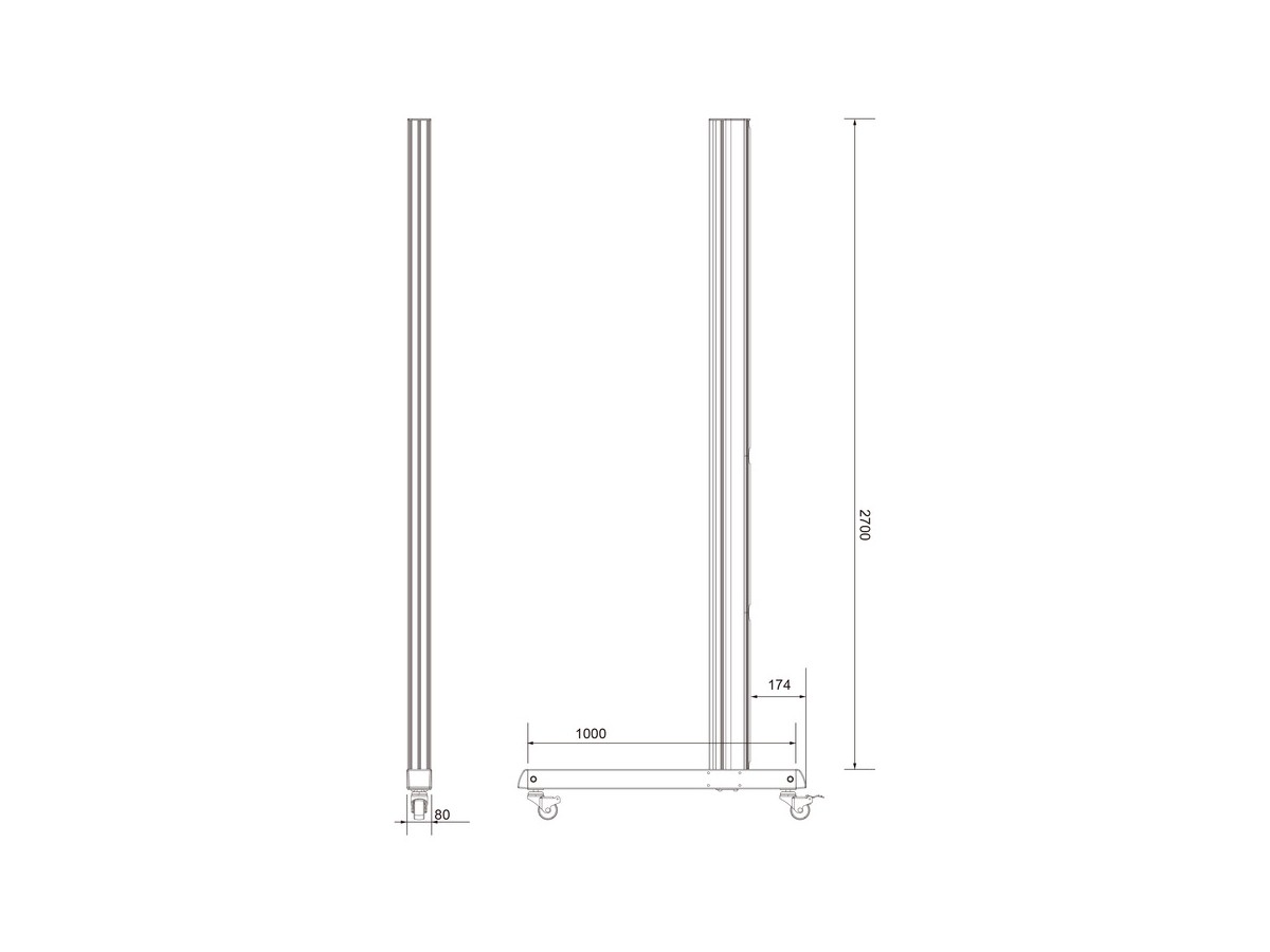 Product code:M Pro Series - Wheelbase 270cm Pro inc castors - Part for Pro Series, wheelbase 270cm inc castors, aluminum , stand for rail mounting - wheel-standing - black