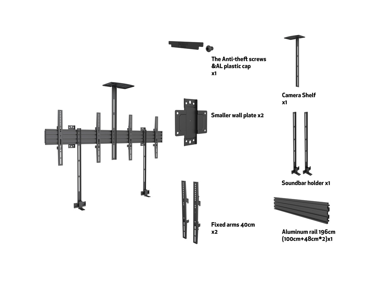 Product code:M Pro Series - Collaboration - Side by Side with brackets 65" - Included brackets 2x65" - Wall mount for LCD display, steel, 2 screen, single side, fixed, VESA Max 400x400 - screen size: 32"-65" - black