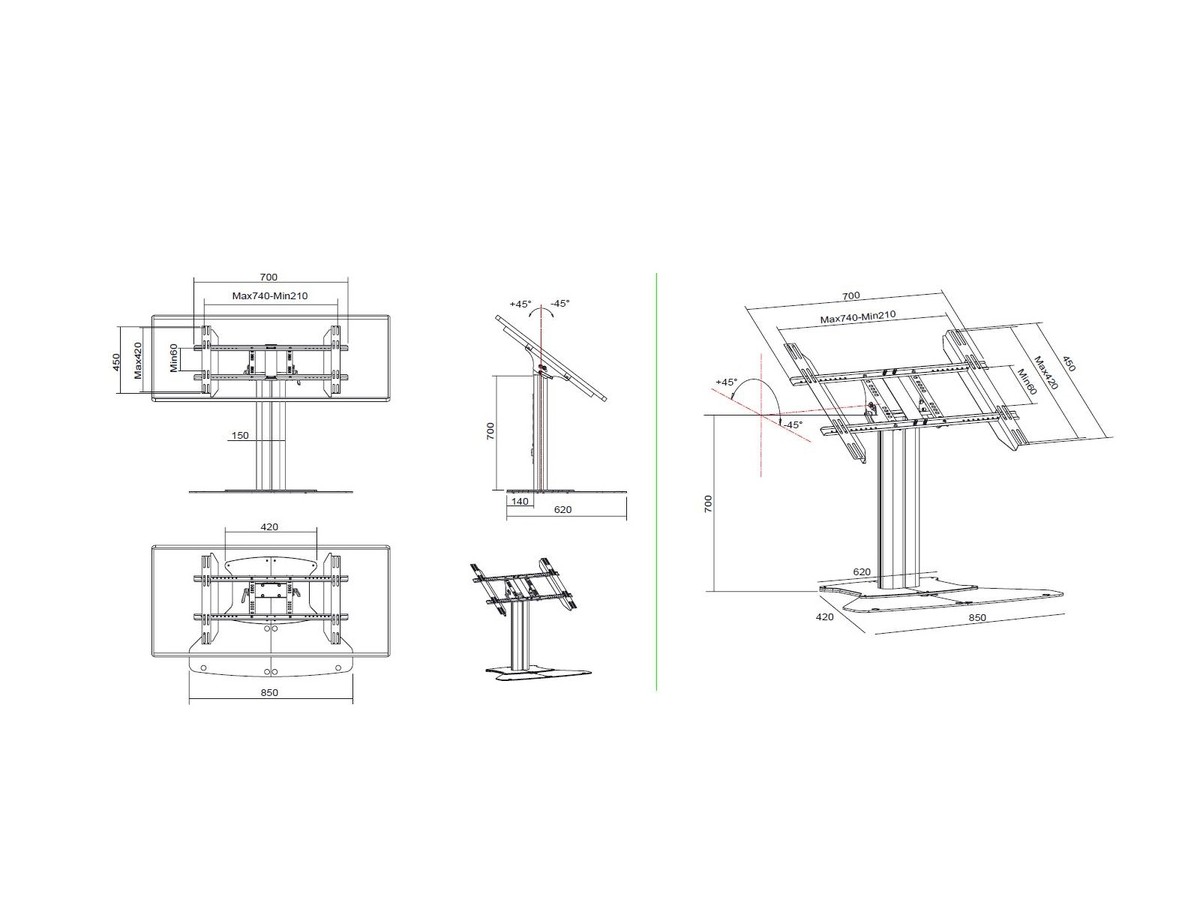 | Height when in table position with Floorstand base: | 800 mm |