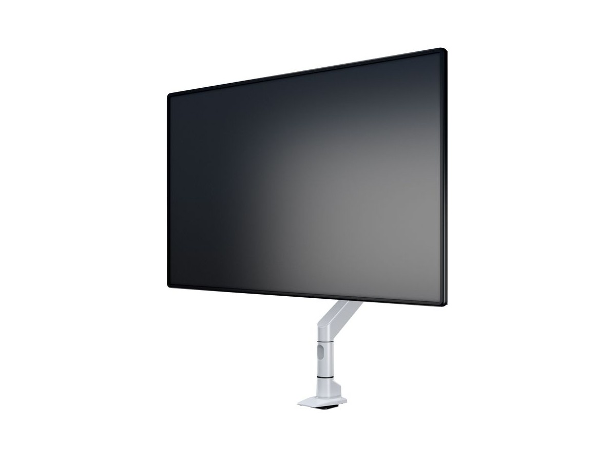 The M VESA Gas Lift XL Single White is made out of a durable aluminum construction and uses a gas driven suspension technique. This makes the screen "float" and it can then be moved with near zero effort. Sleek and streamlined, the M VESA Gas Lift XL Single White frees up space and allows positioning of your display for greater productivity. With a maxload of up to 10kg even very big monitors can be used. The height clearance is 615 mm above the desk. Rotation function is not used for widescreen or ultrawide screen monitors. The unique counterbalance gas technology provides smooth adjustment in any direction. Easy move the screen from landscape to portrait position or move the screen close to the desk, high up, matching almost any wanted working position imaginable.