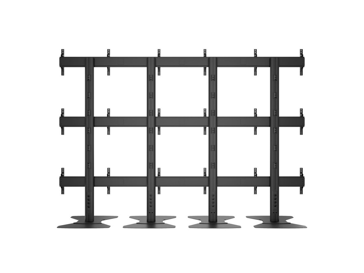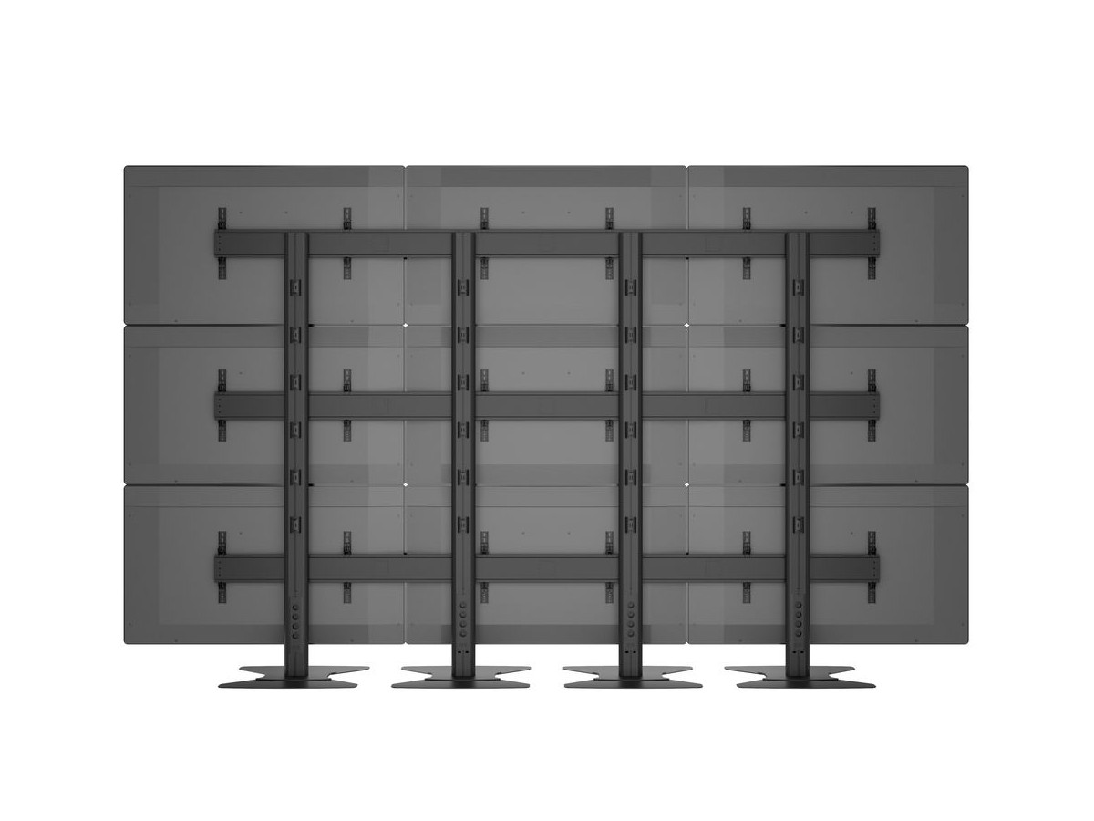 M Public Video Wall Stand 9-Screens 65-75" Black (3x3) screen array configuration is: 3 screens wide x 3 screens high.