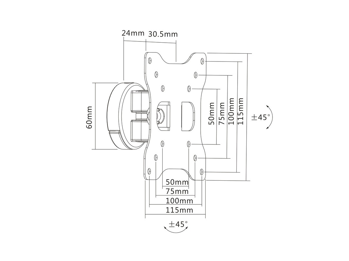 | Universal & VESA standard: | 50x50 75x75 100x100 mm |