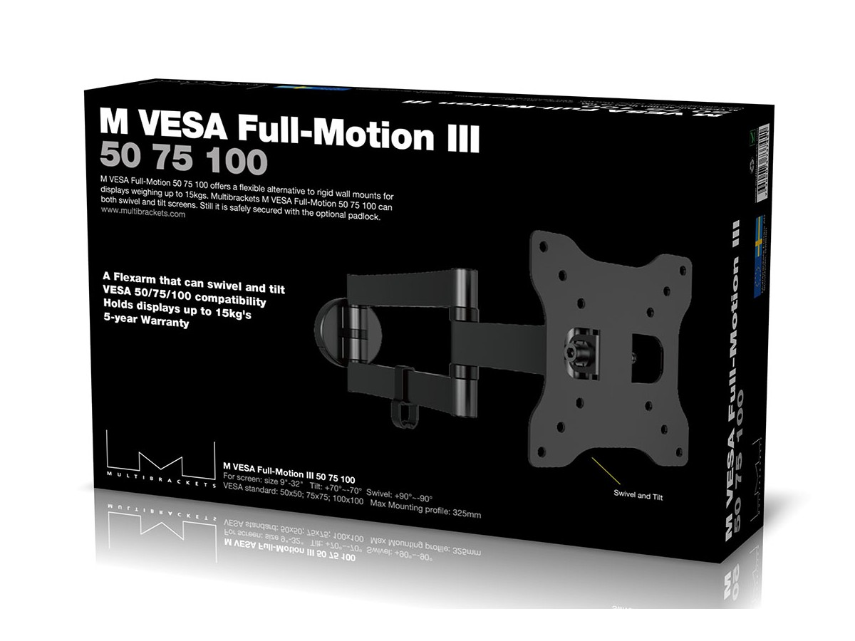 We think you found it. M VESA Full-Motion 50 75 100 offers a flexible alternative to rigid wall mounts for displays weighing up to 15kgs.