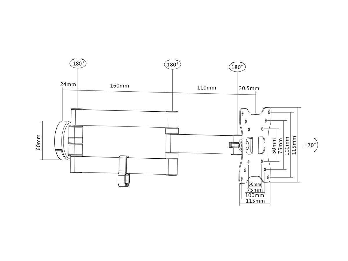 | Universal & VESA standard: | 50x50 75x75 100x100 mm |