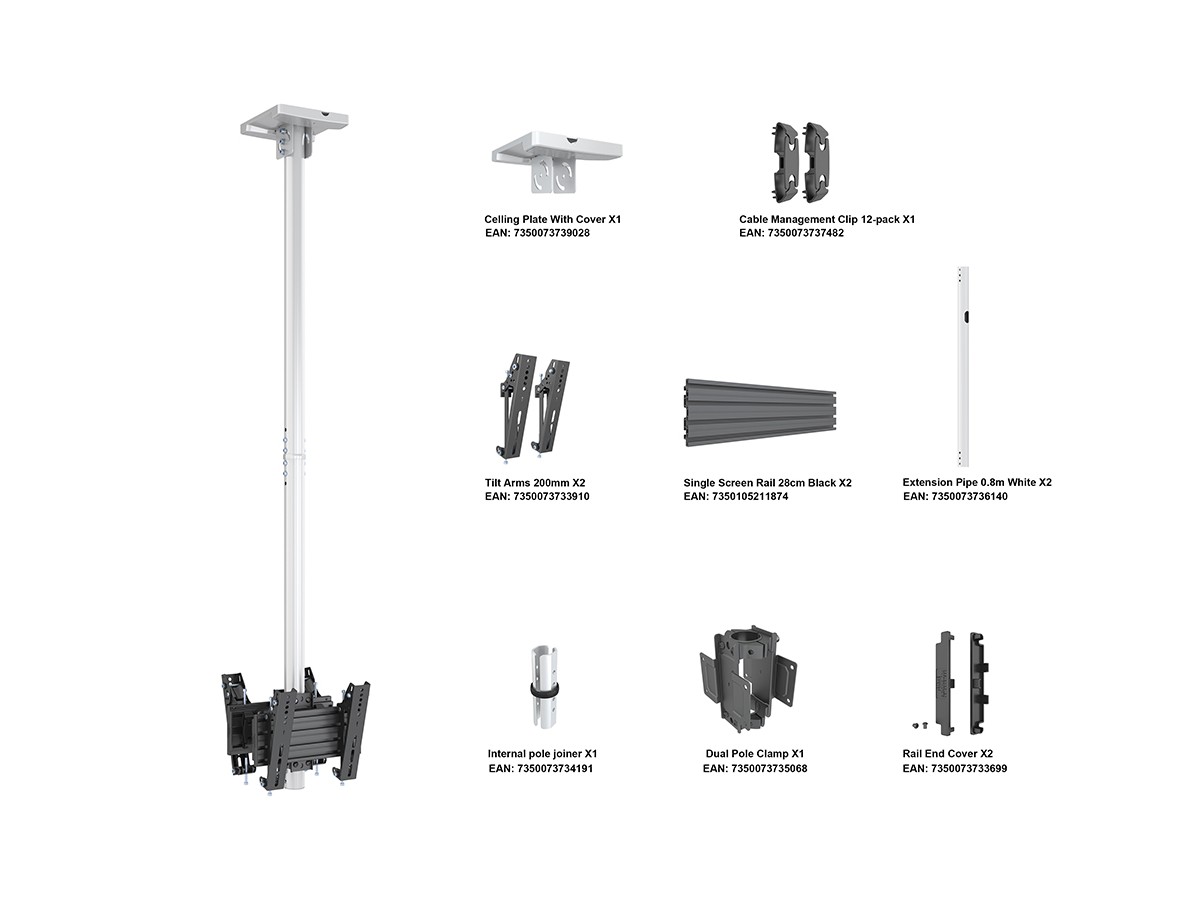 Multibrackets M Ceiling Mount Pro MBC1UX2 White VESA 200 is an innovative - ready to be installed Dual Side-Display Ceiling Mount.