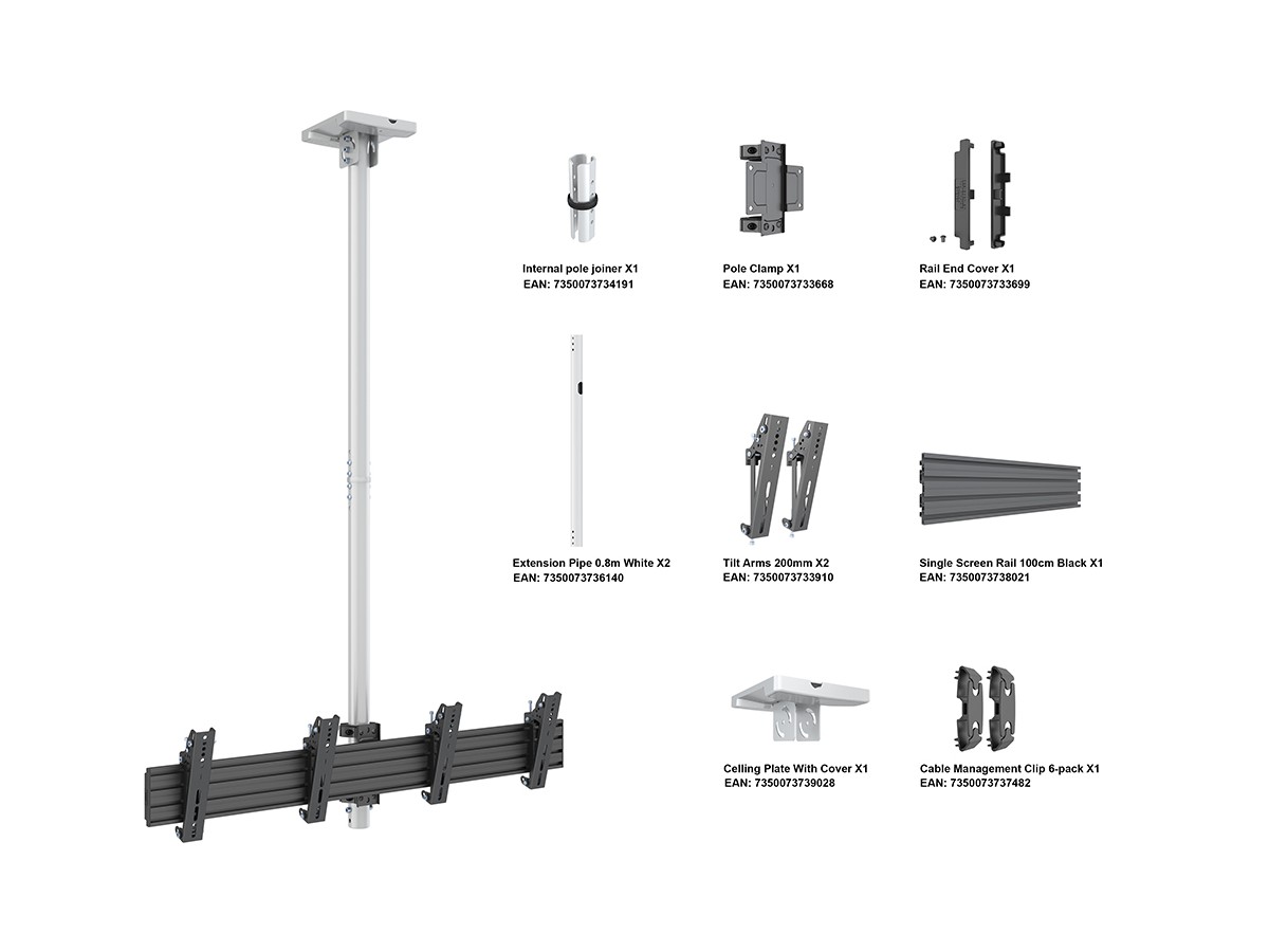 Multibrackets M Ceiling Mount Pro MBC2X1U White VESA 200 is an innovative - ready to be installed Single Side Double Display Ceiling Mount.