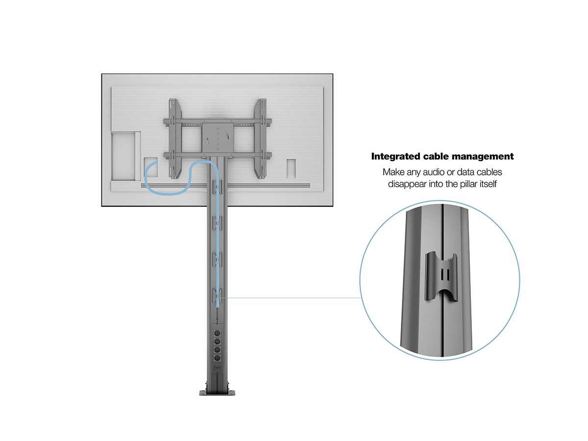 When developed much emphasize has been put into the stability and overall quality of the display stand, the floorbase plate is one solid peiece of metal creating good looks and great stability. This makes it a perfect partner for use in home environments as well as public environments such as conference rooms, class rooms or hospitals.