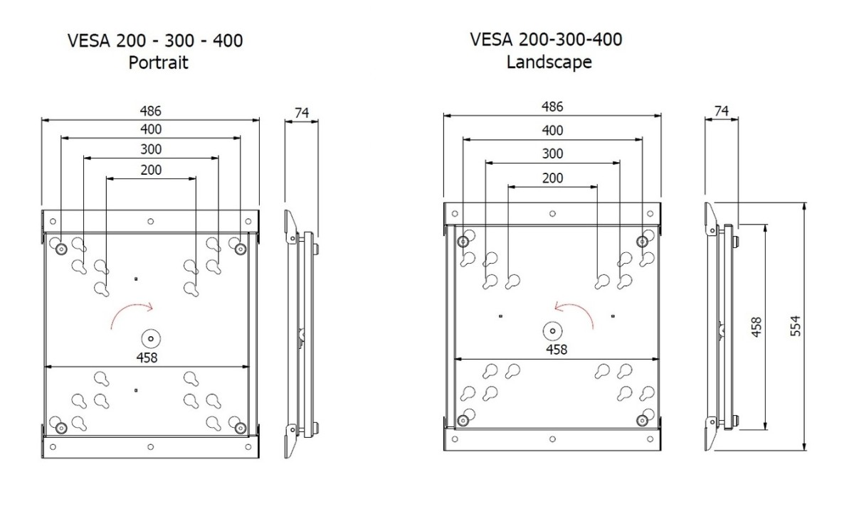 | Mounting holes (VESA): | Stand: 100 - 800 /100 - 400 mm Flip function: 200x200, 300x300, 400x400, 600x400 mm |