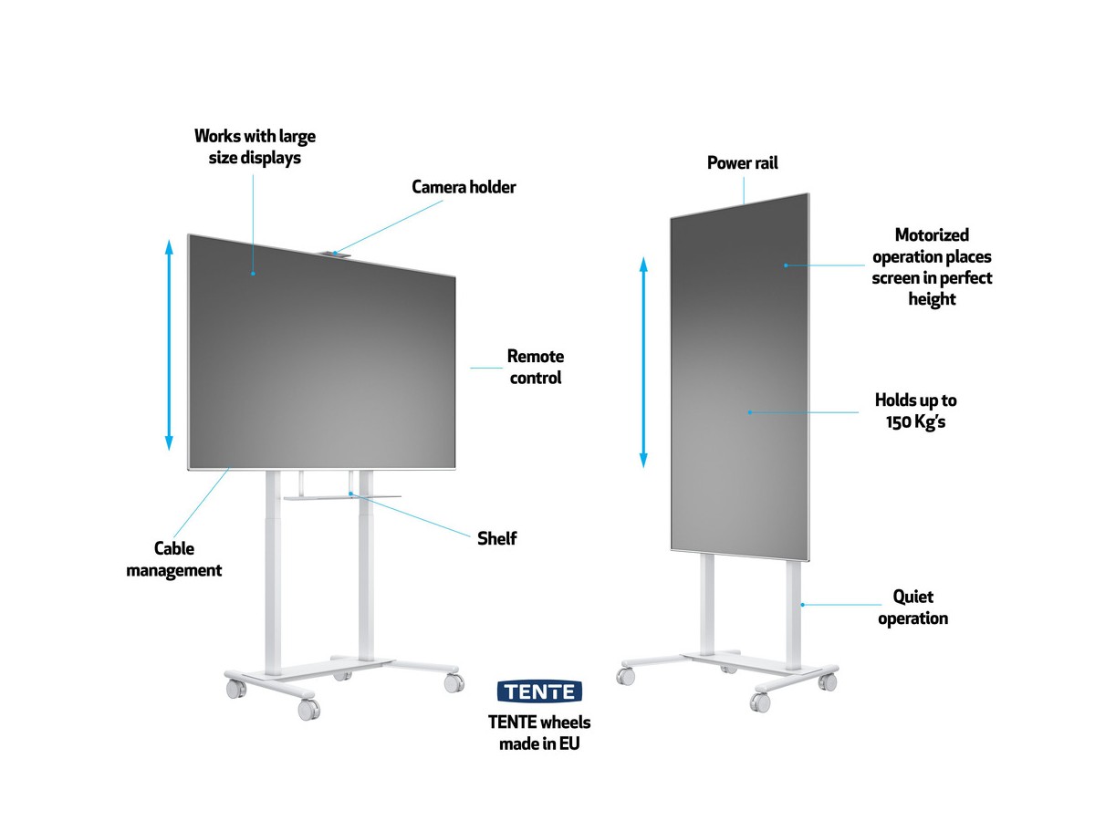 Product code:M Motorized Floorstand XL 150kg White - Stand kit ( floor stand ) for LCD/LED TV - screen size: 55-110" - max load: 150 kg - VESA: 100x100-1000x600 mm - white