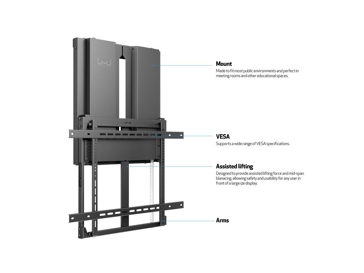 Product code:M Counterbalanced Wallmount 23-40kg - Wall mount for displays & touchdisplays - black - screen size: 37"-55" - mounting interface: max 800x400 mm